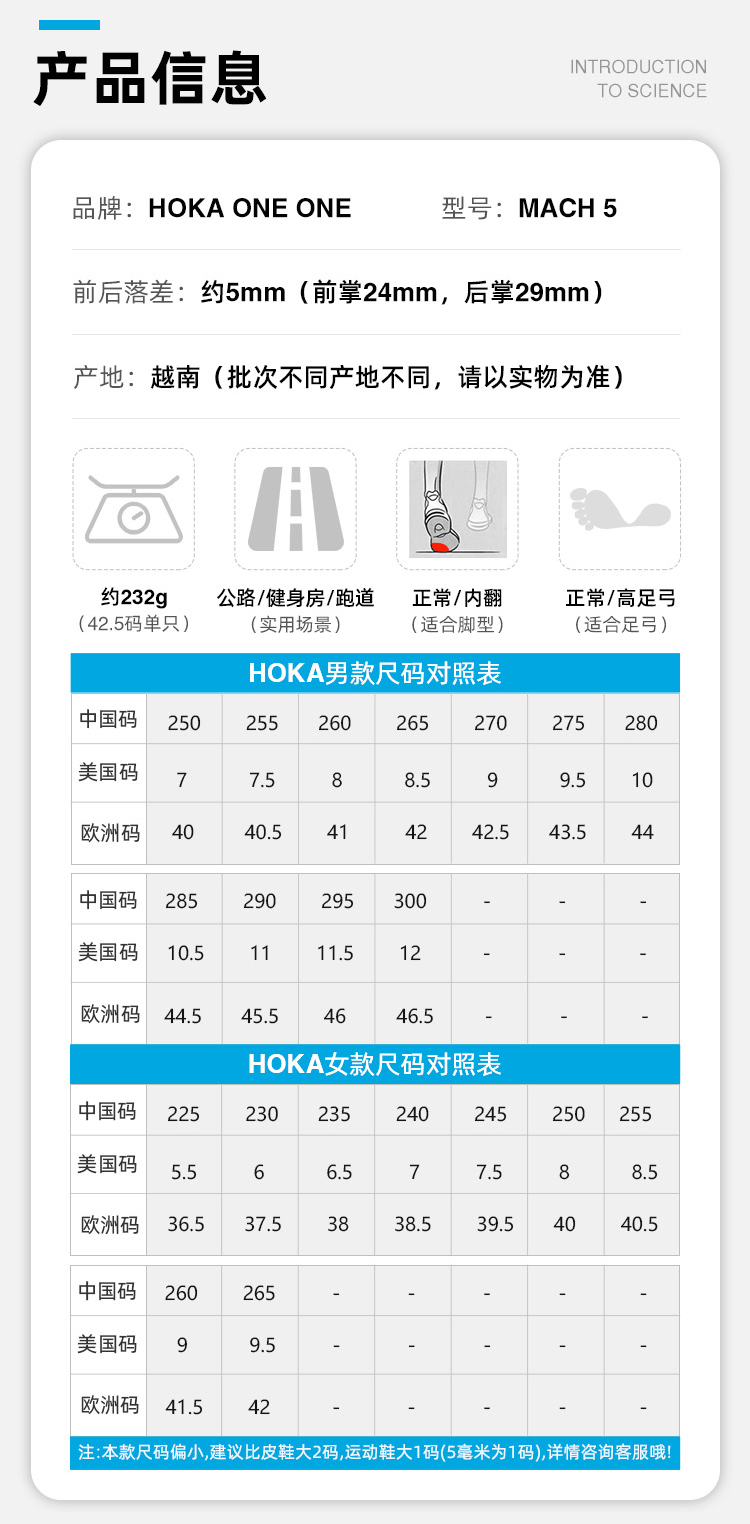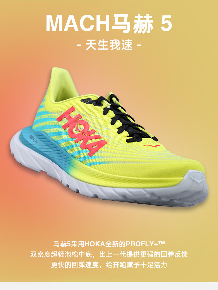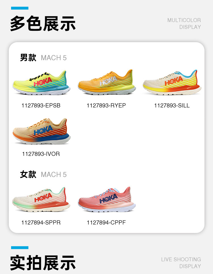 HOKA 马赫Mach5男女款厚底公路跑鞋轻量缓震训练提速跑步鞋