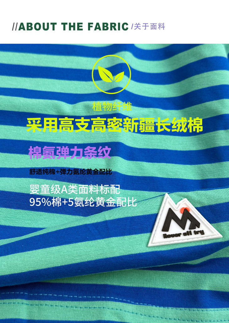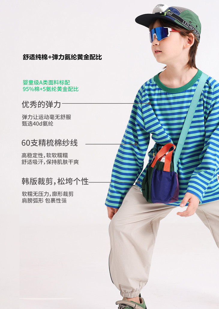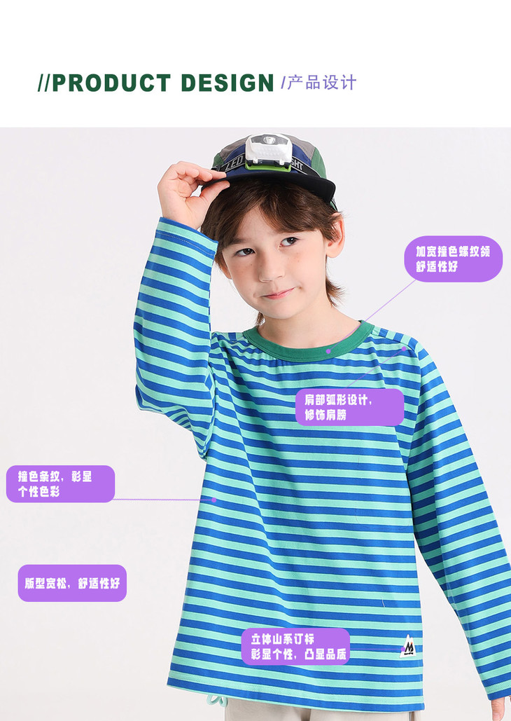🔺领部包边撞色,加宽圆领 不卡头 🔺肩膀采用弧形,修饰肩部,微微的落肩款,轻松实现抬手手自由 🔺新疆棉+弹力莱卡透气面料,A类呵护宝宝的皮肤
