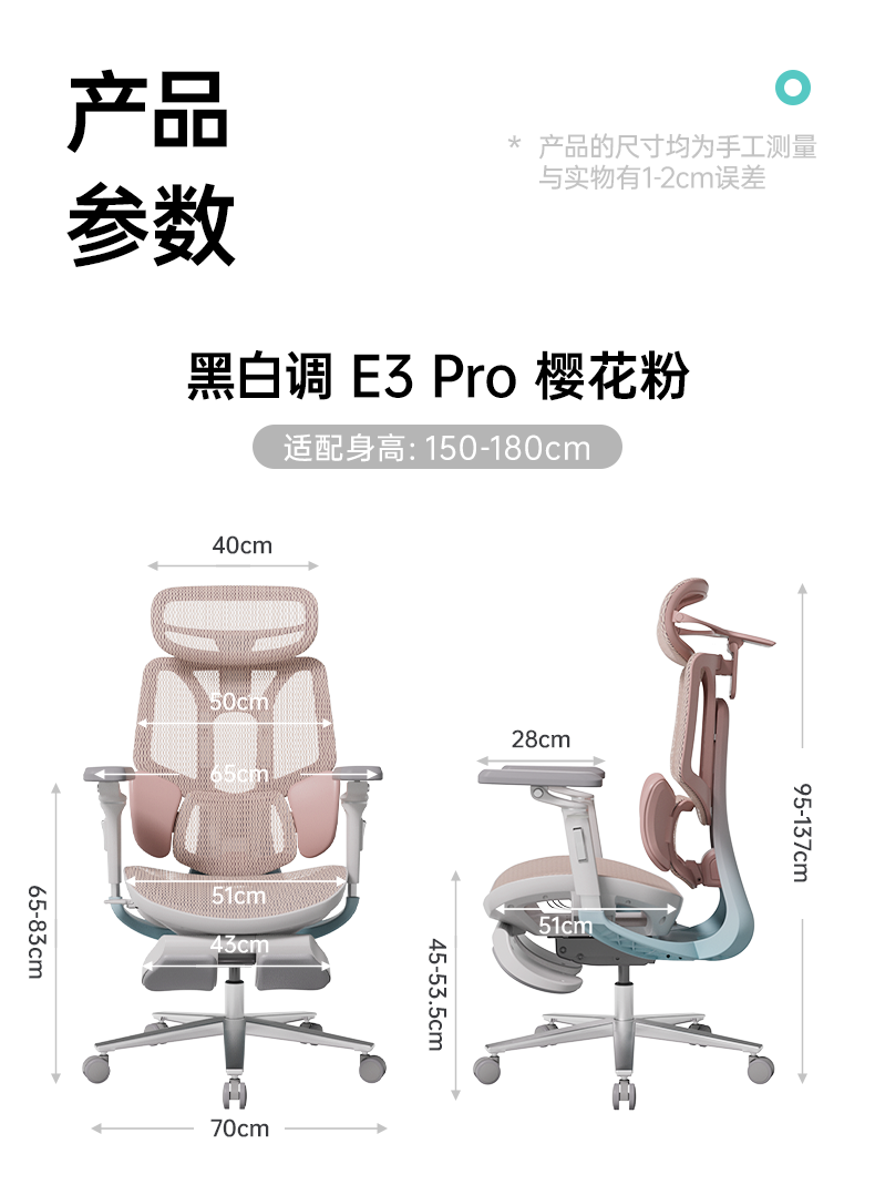 黑白调E3Pro 4代人体工学椅 电脑椅子办公椅电竞椅人工力学座椅樱花粉