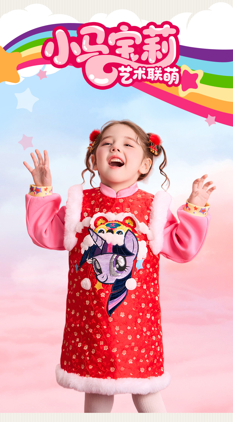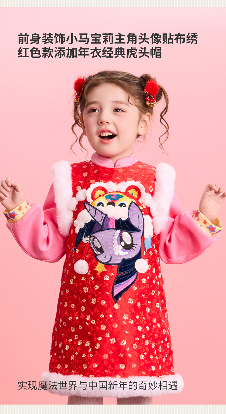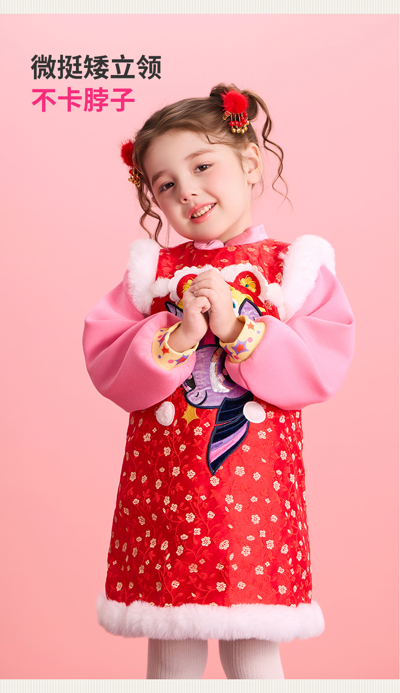 小马宝莉联名年衣童装旗袍连衣裙冬季新款女童小马宝莉新年刺绣旗袍