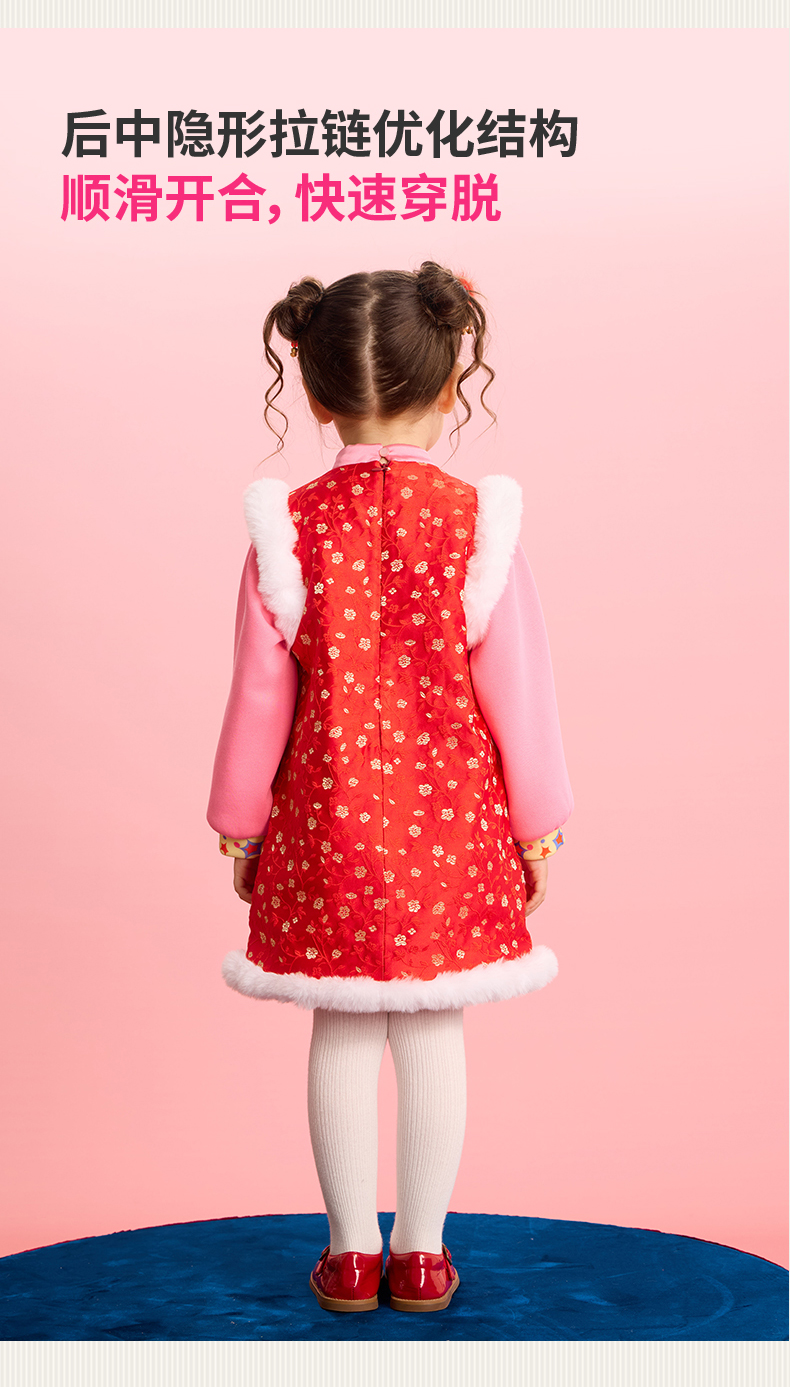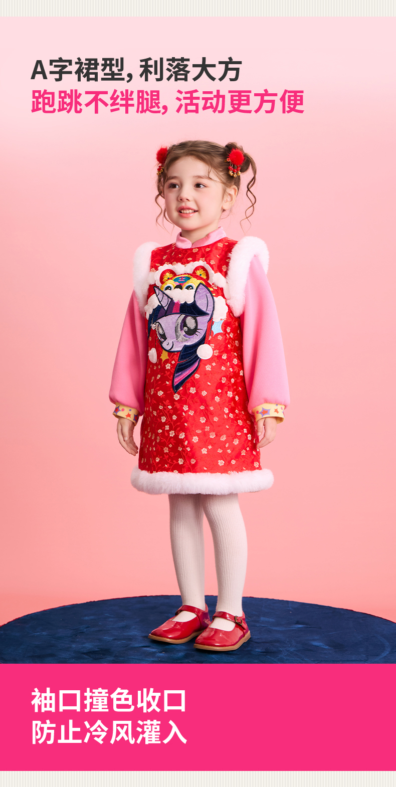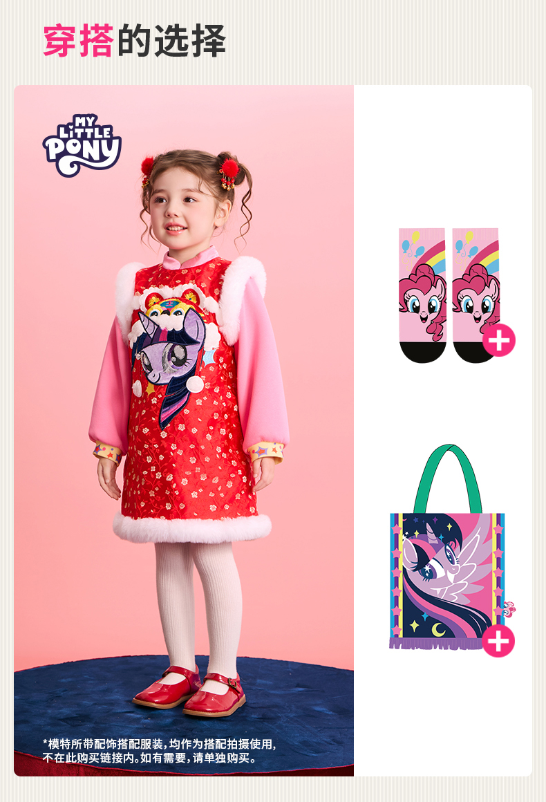 小马宝莉联名年衣童装旗袍连衣裙冬季新款女童小马宝莉新年刺绣旗袍