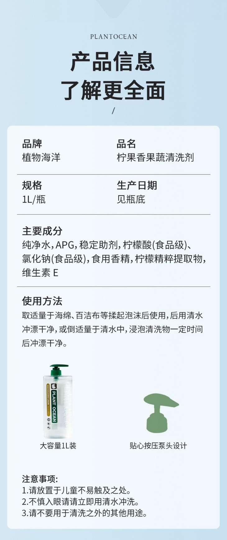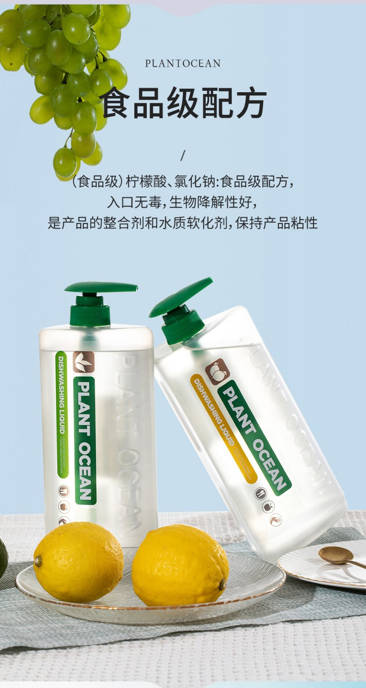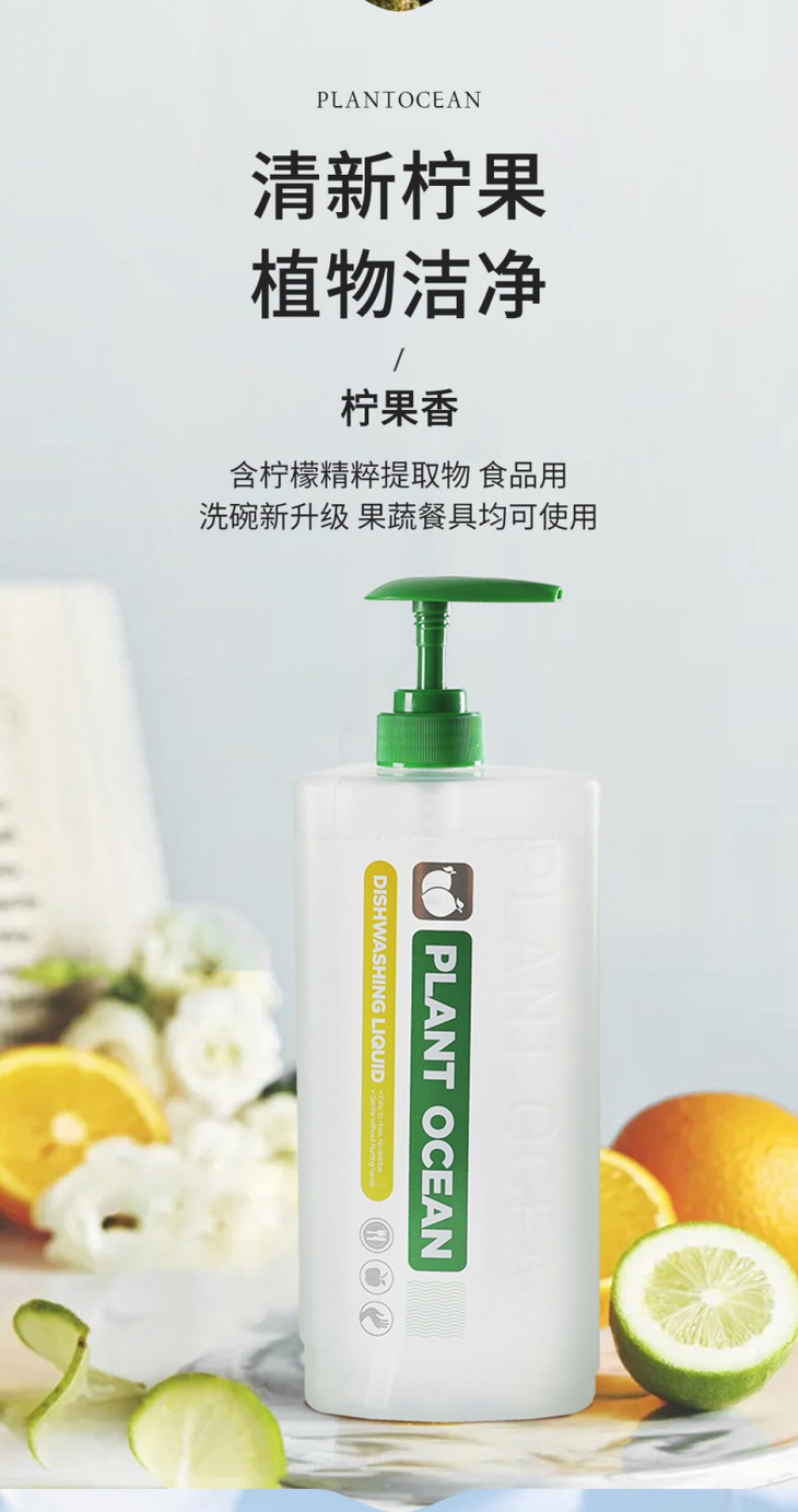植物海洋果蔬餐具清洗剂(柠果香型):清新柠果香气去异味,洗碗期间心情更好了,含柠檬精粹提取物,迅速瓦解油污,餐具光亮如新~