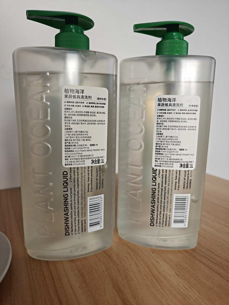 整体是食品级配方,没有刺鼻的味道 添加了天然绿茶/柠檬提取物 洗碗/果蔬的时候,一股清新的香味