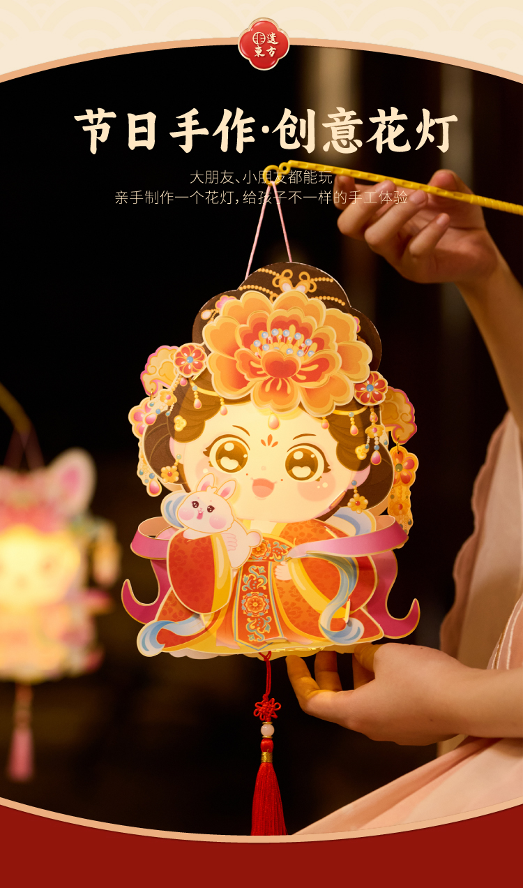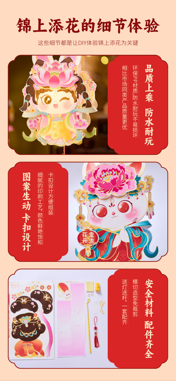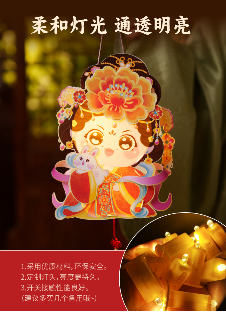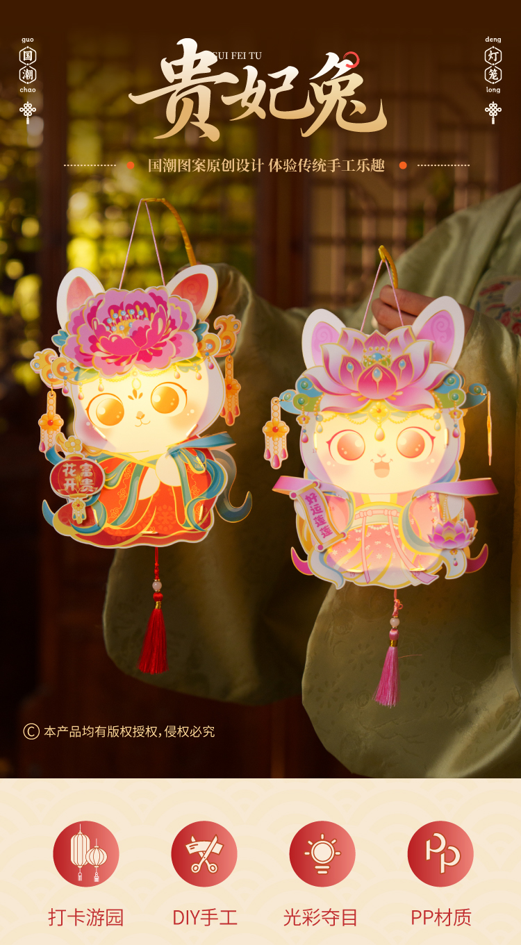 【供】中秋节贵妃兔灯笼手工diy儿童制作材料包古风玉兔子花灯装饰2025