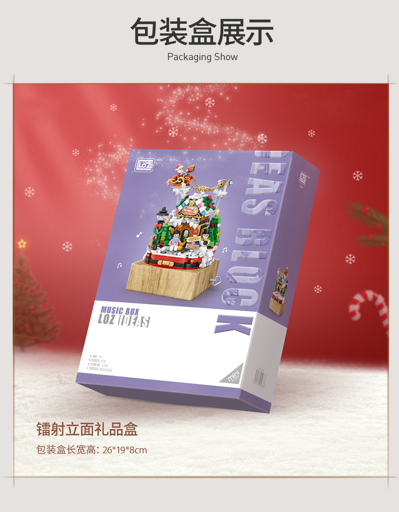 LOZ 俐智 微钻小颗粒积木城堡拼装玩具智力女孩旋转3D立体圣诞节音乐盒动漫卡通礼品生日情人节礼物 1237圣诞树音乐盒