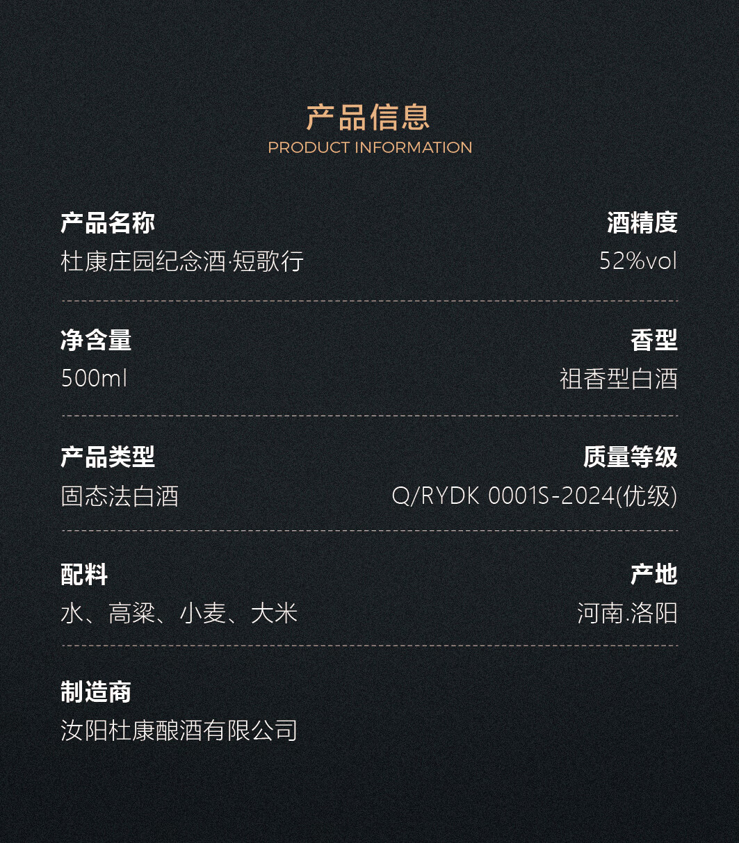 【品名】杜康短歌行庄园纪念酒52度/500ml