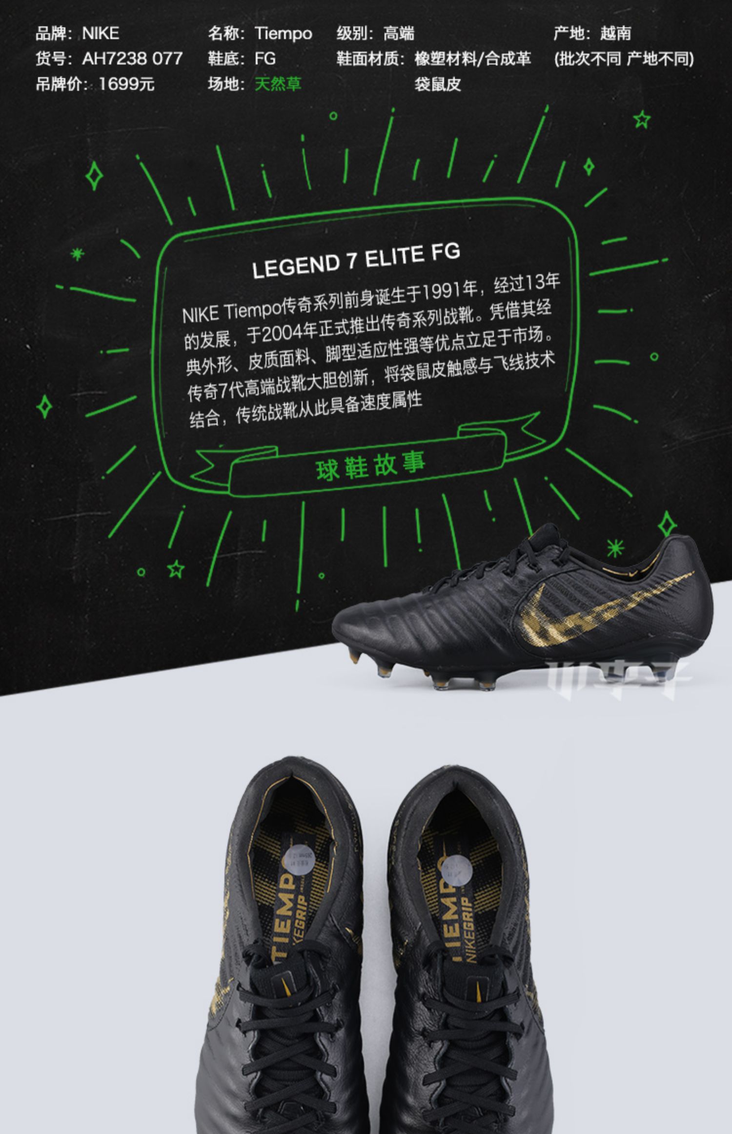 小李子:专柜正品Nike耐克传奇7袋鼠皮FG长钉成人足球鞋男AH7238