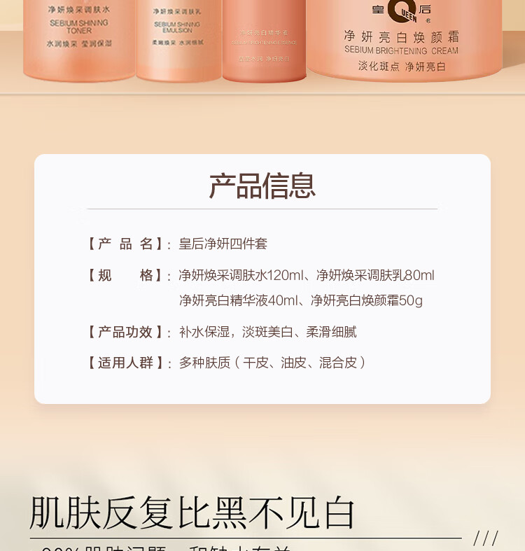 片仔癀皇后牌净妍焕采保湿4件套 滋润补水嫩肤水乳精华面霜护肤品