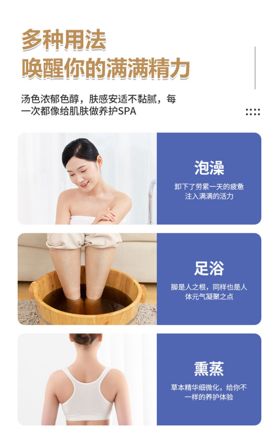 成分:人参,三七,艾叶,肉桂,红花,干姜,益母草,当归,党参,伸筋草,细辛等草本原材熬煮。