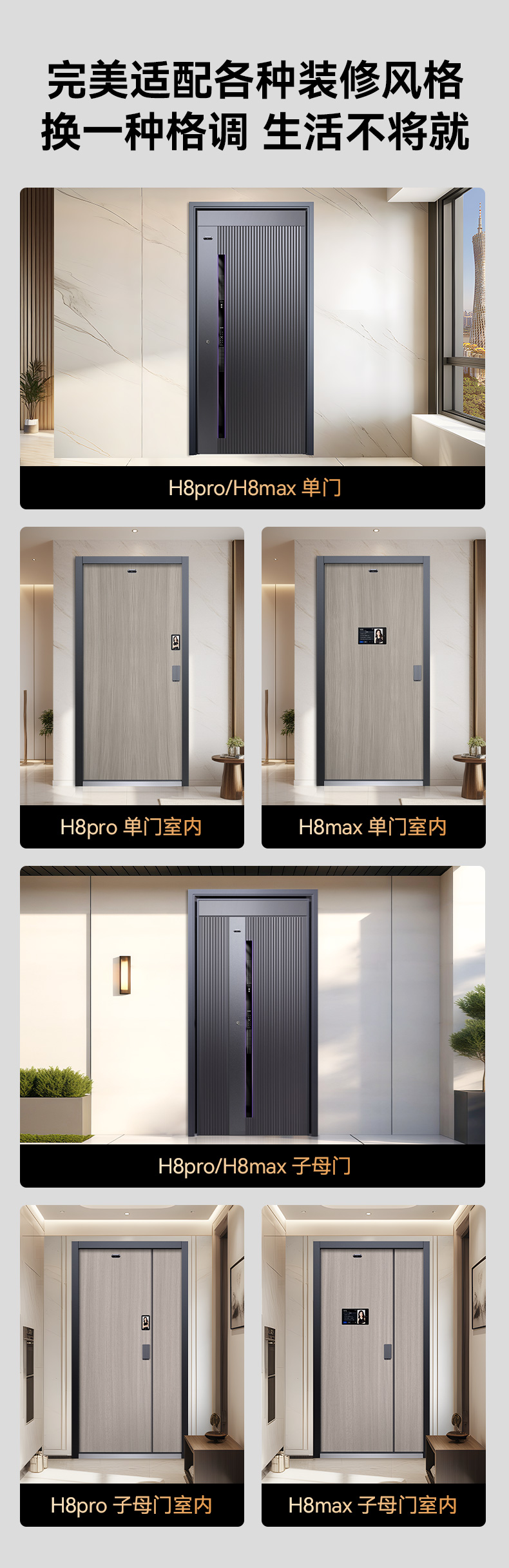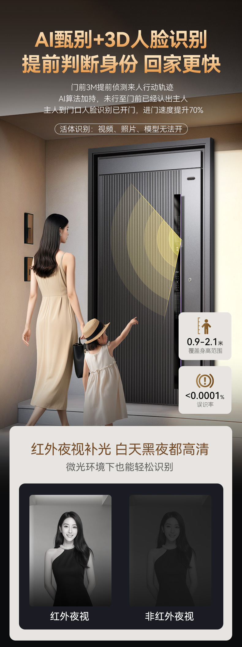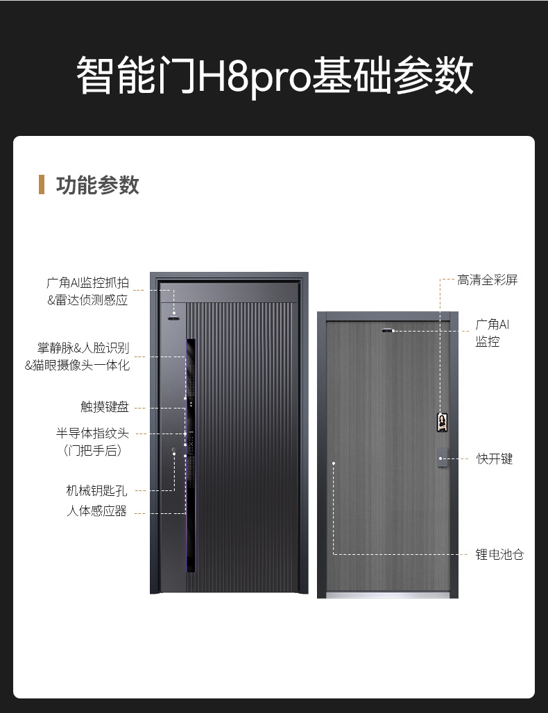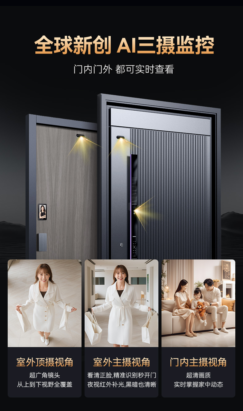 亚太天能精雕铸铝智能门H8pro一体化全自动AI三摄监控防盗入户门家用进户门子母大门