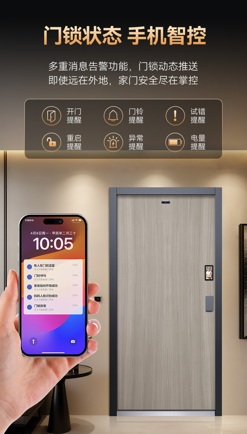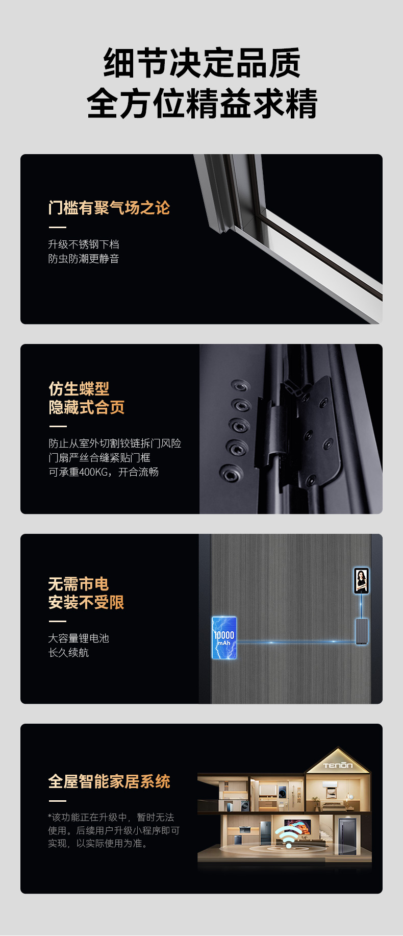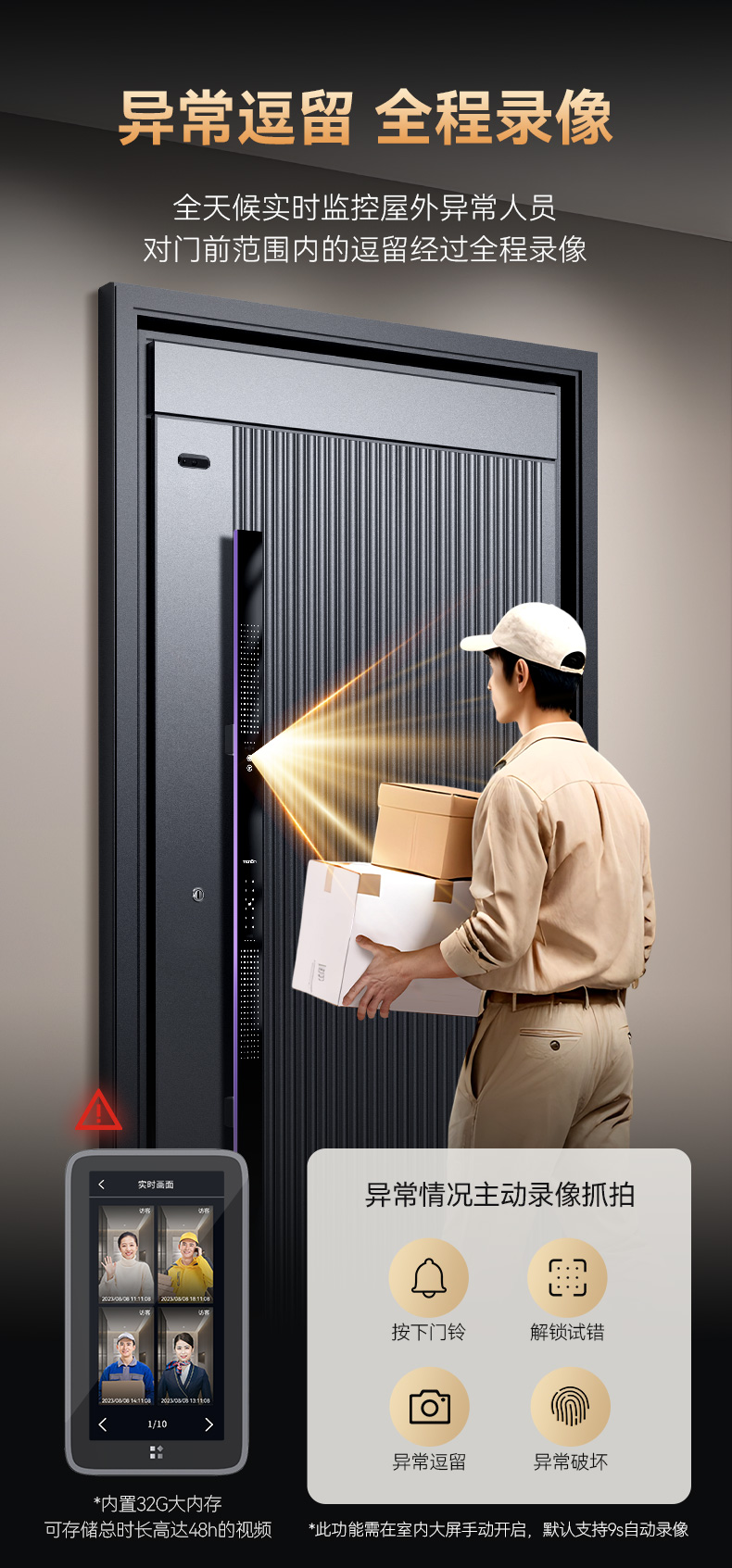 亚太天能精雕铸铝智能门H8pro一体化全自动AI三摄监控防盗入户门家用进户门子母大门
