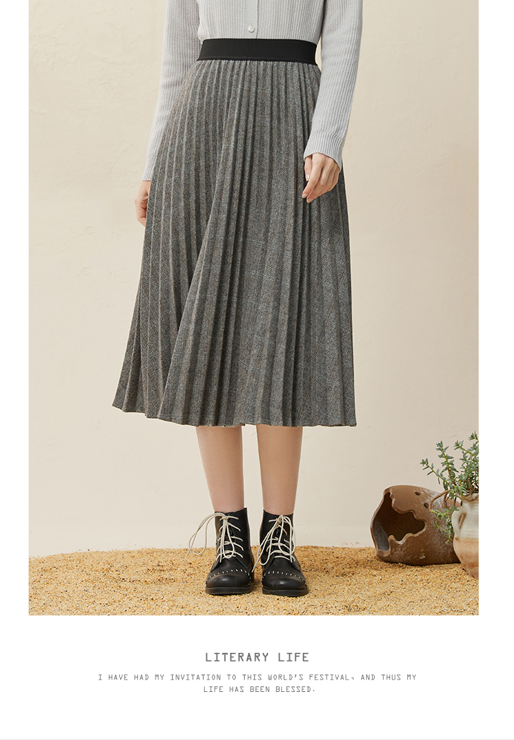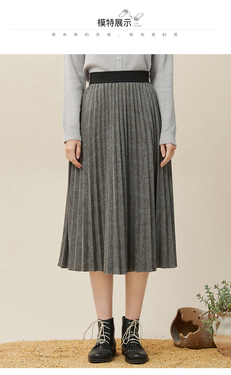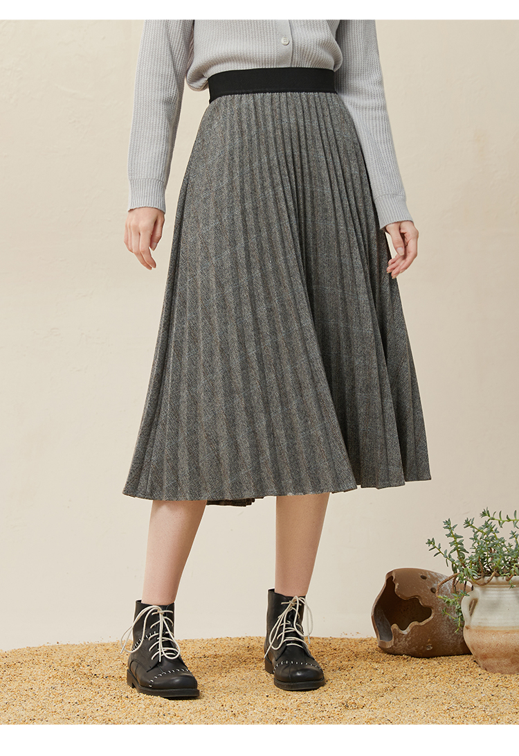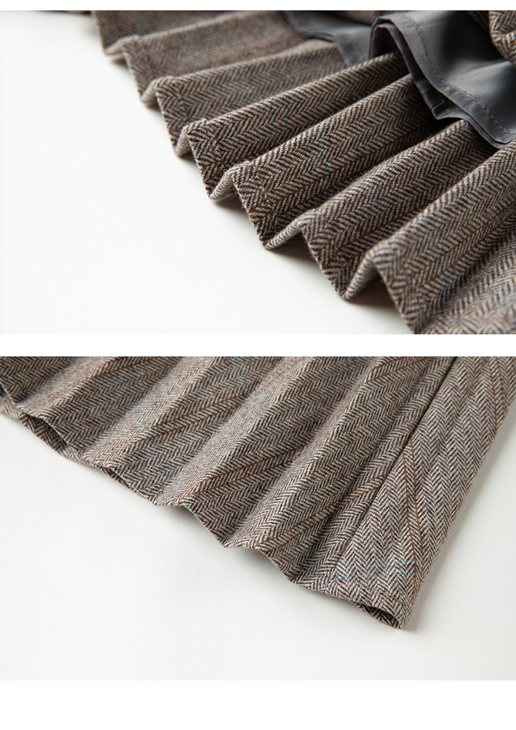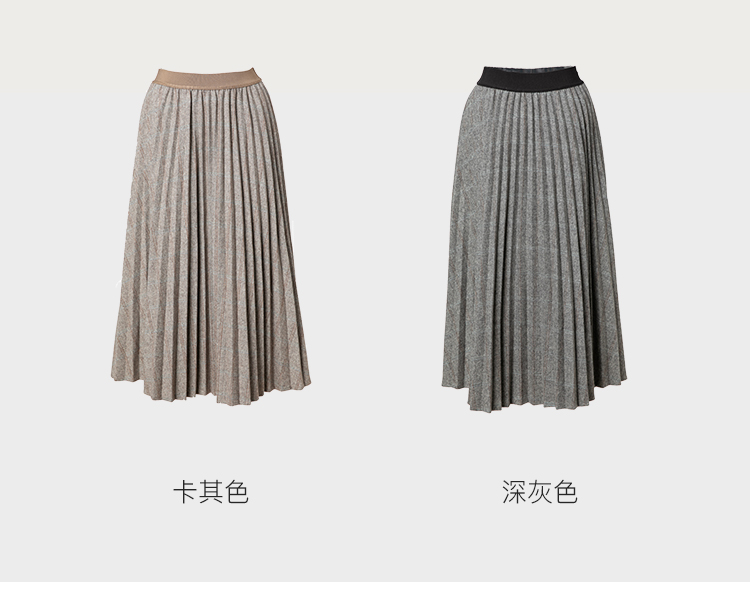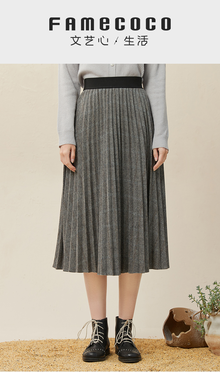 Famecoco范可儿羊毛半身呢子裙女士秋冬高腰百褶裙遮肚子F228HA027