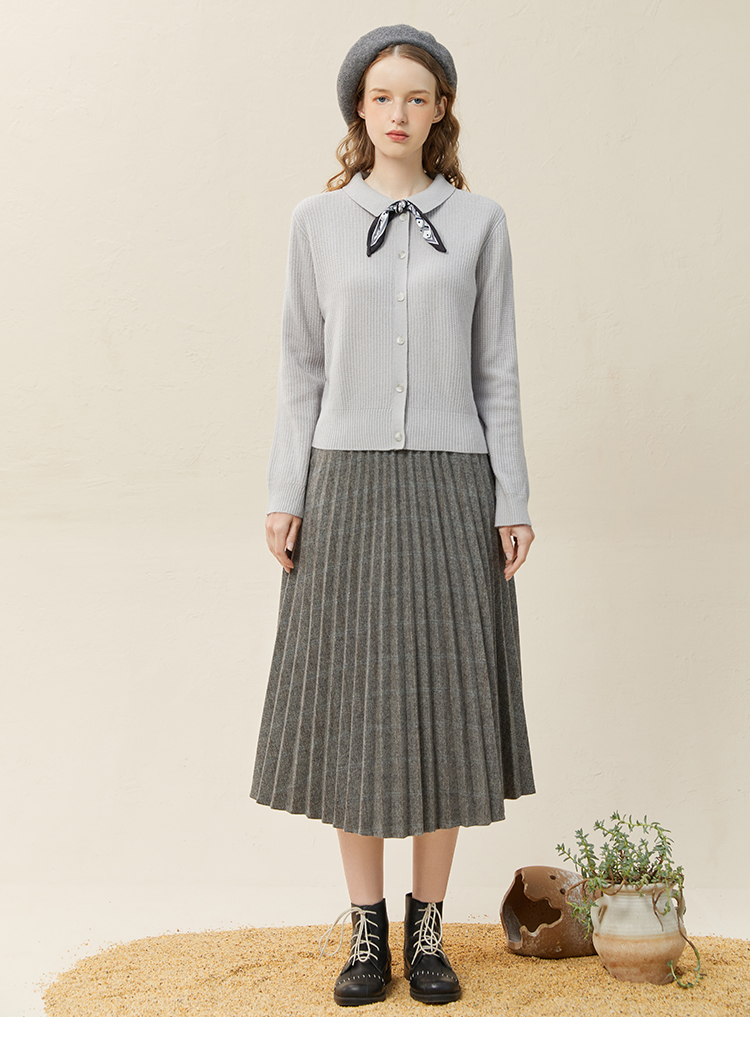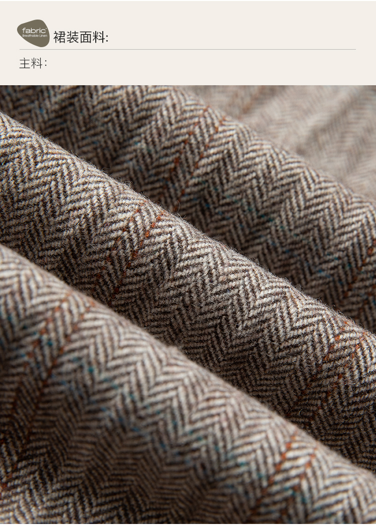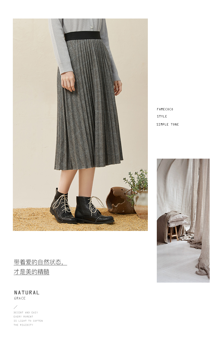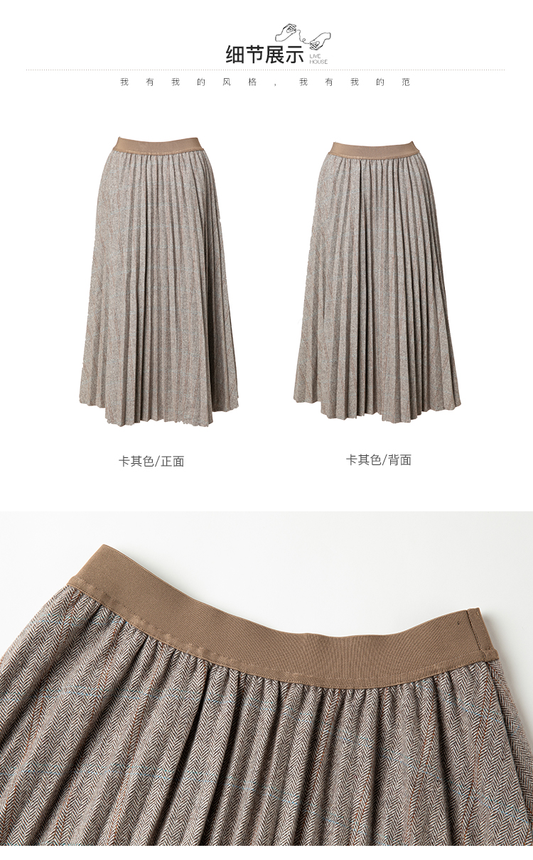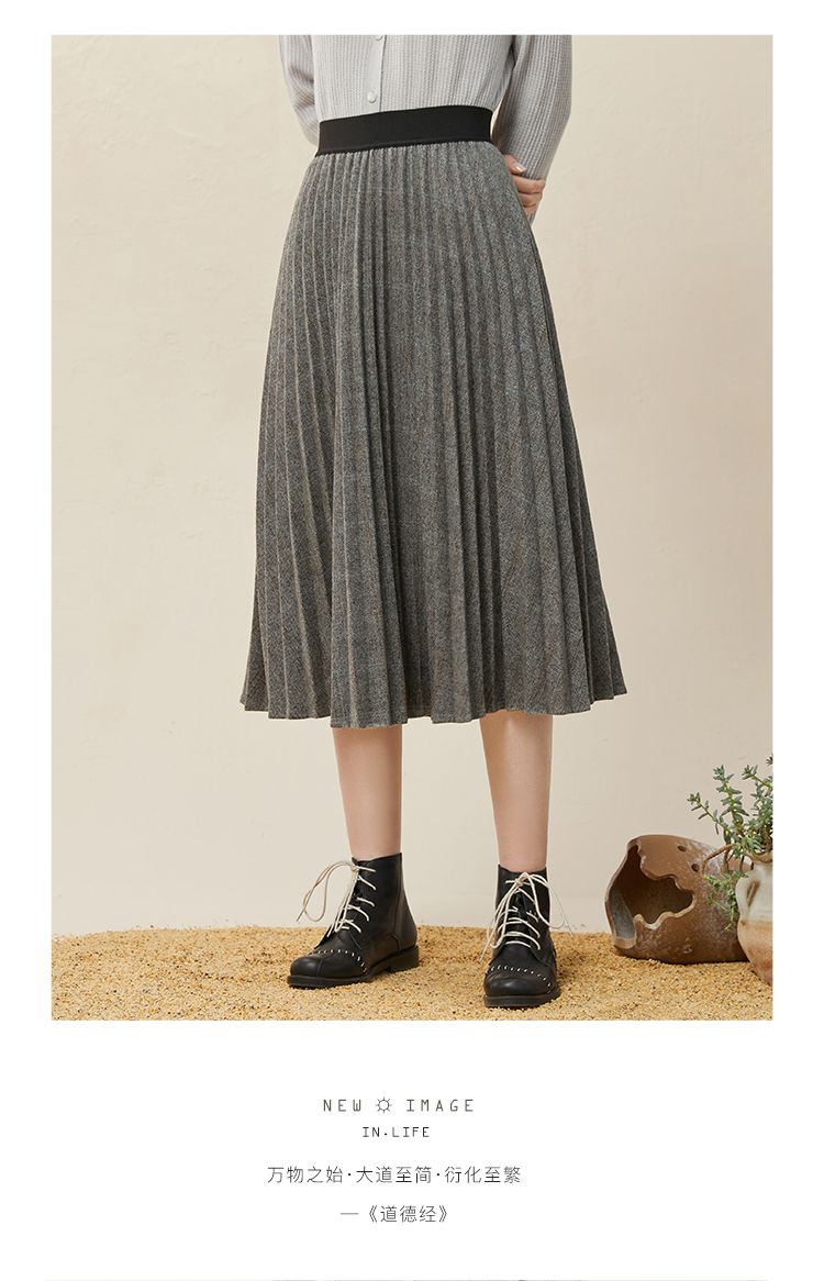 Famecoco范可儿羊毛半身呢子裙女士秋冬高腰百褶裙遮肚子F228HA027