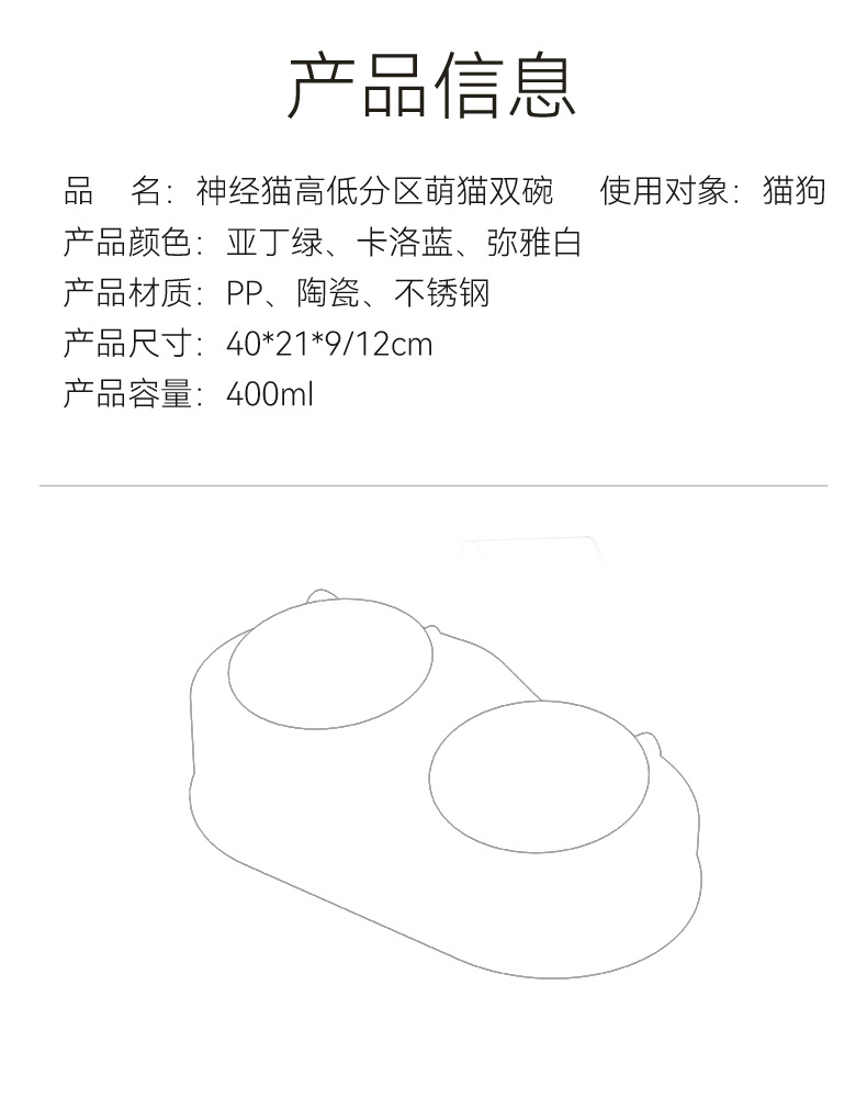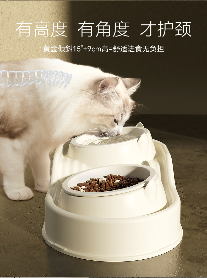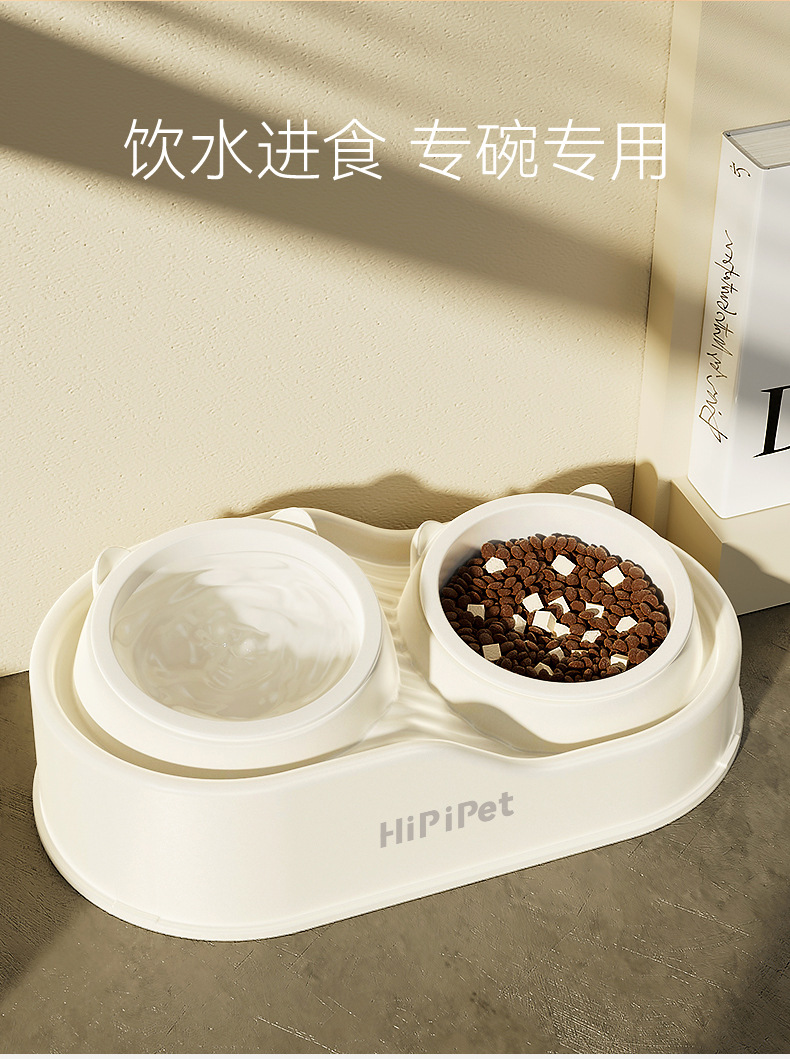 【饮水进食!专碗专用】全可拆洗,清洁不留死角,宠物用品粮水分区萌猫陶瓷双碗防打翻猫碗饮水食盆狗碗宠物碗。ra