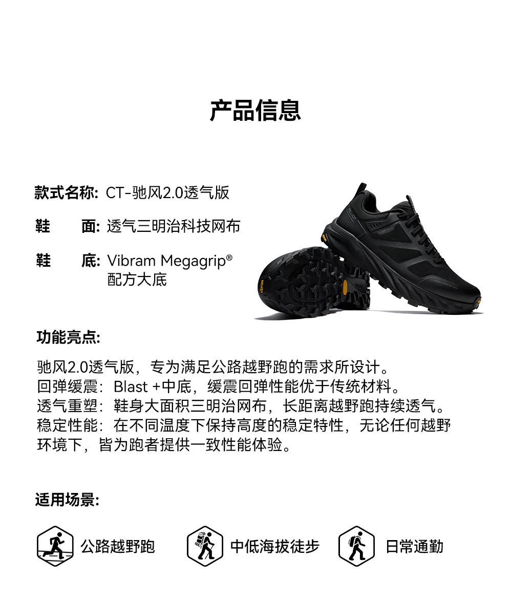 【CT-驰风2.0】伯希和越野跑鞋男户外Vibram防滑缓震全地形跑山鞋
