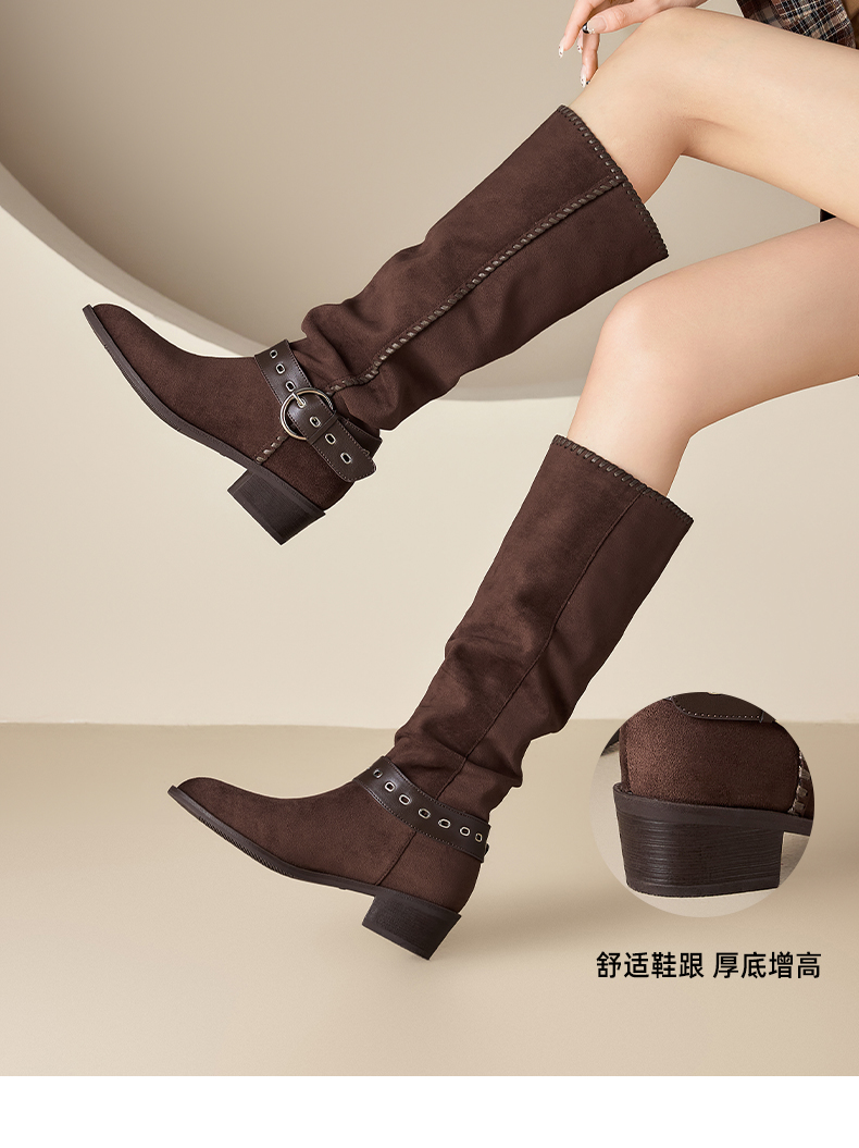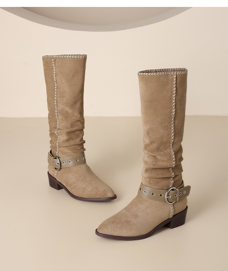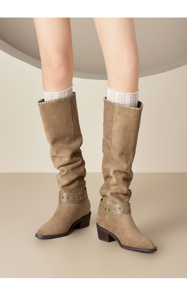 【筒高可选】星期六复古编织西部牛仔粗跟堆堆靴SSD4116CKL/SSD4117CKJ