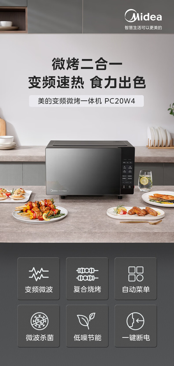 美的(Midea) (509998)PC20W4 变频家用微波炉光波炉微波烧烤一体机