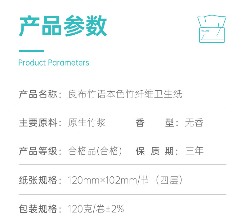 良布(DELLBOO)良布竹语系列有芯有膜卷纸120g(20卷/箱)LNJ120A20