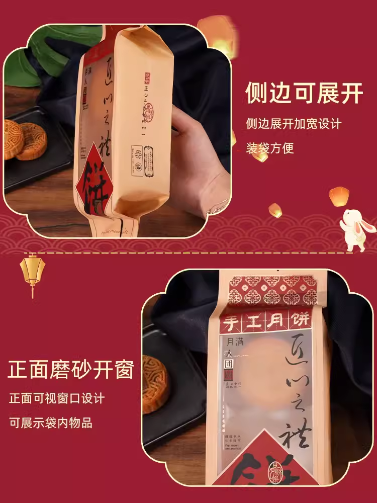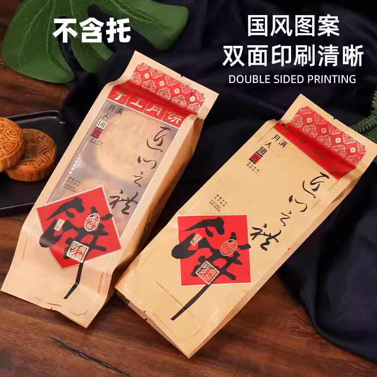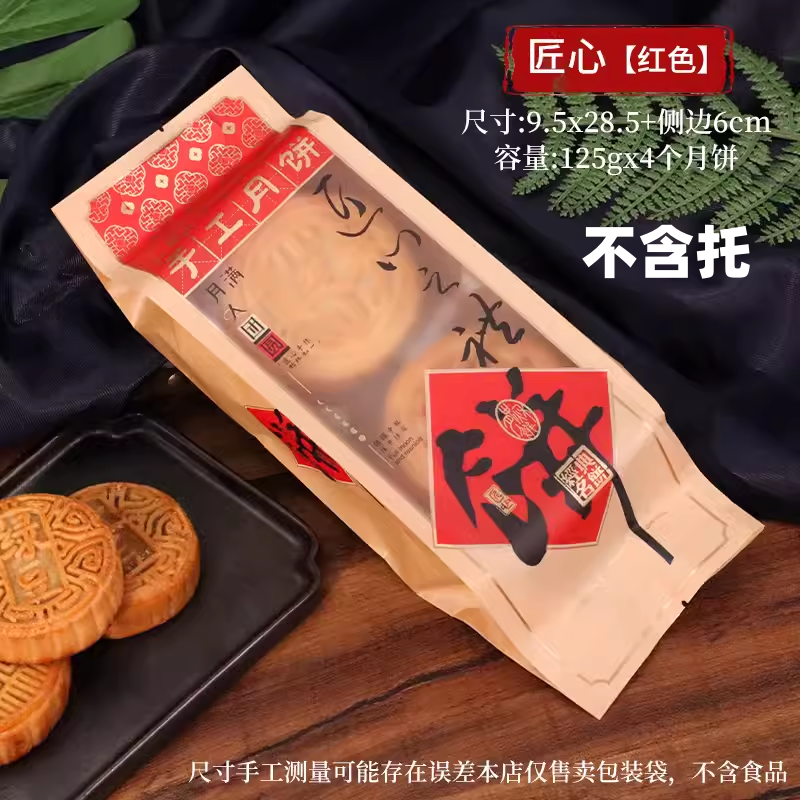 【不含托】月饼袋手提袋饼红/棕色 长条匠心之礼 一斤装牛皮纸中秋月饼包装袋约100个