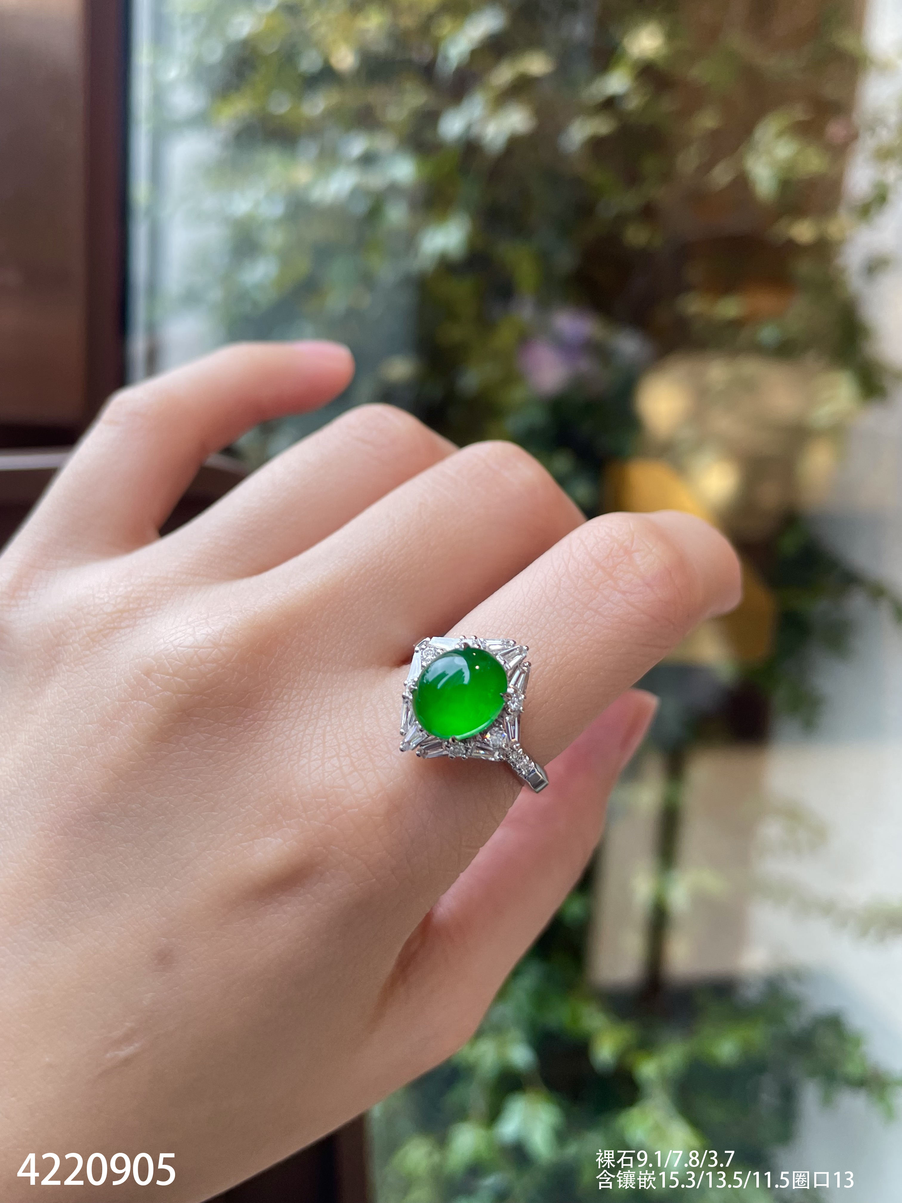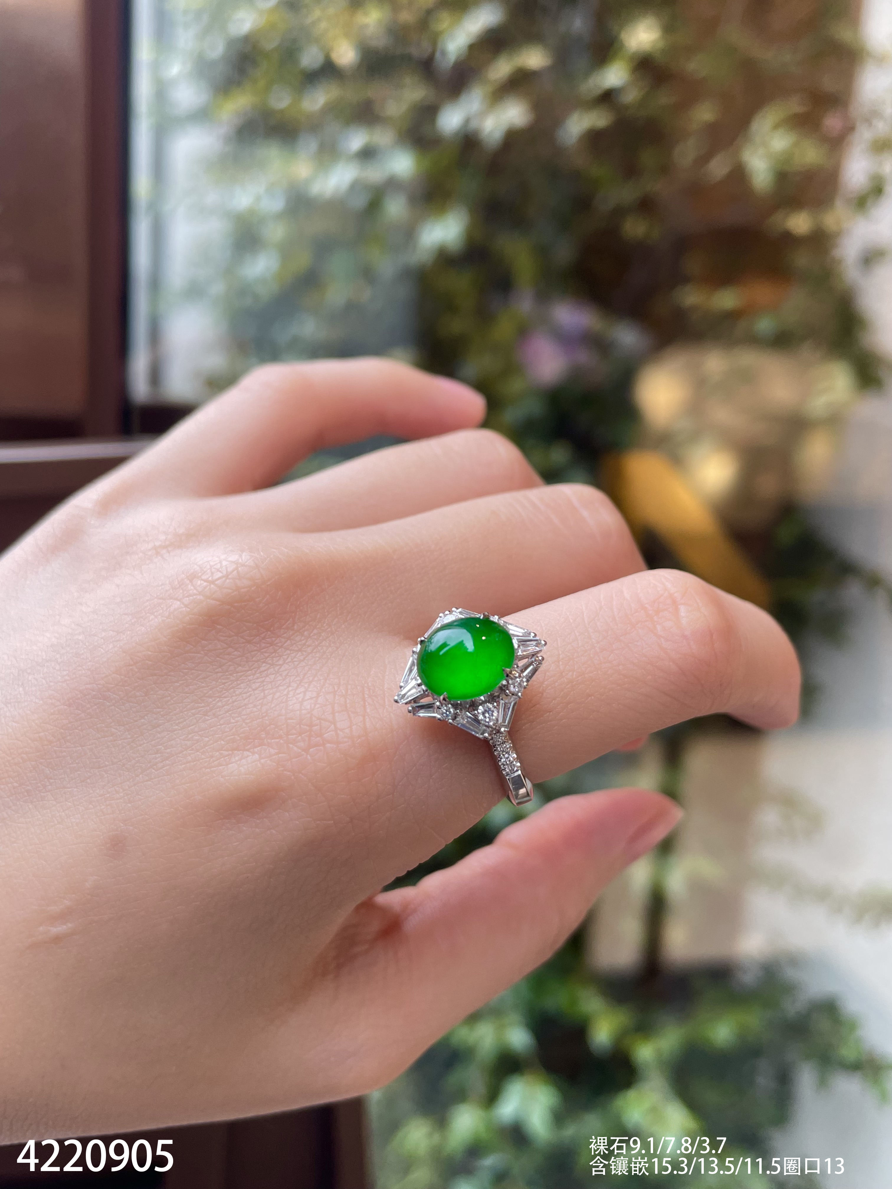 老坑玻璃种艳绿蛋面戒指【4220905】具体价格微信咨询