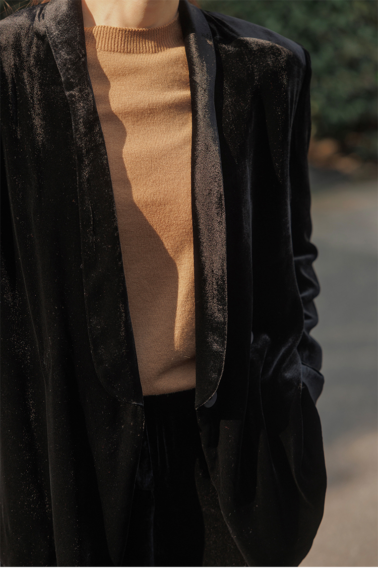 “绅士感” 青果领 真丝混 丝绒西装外套