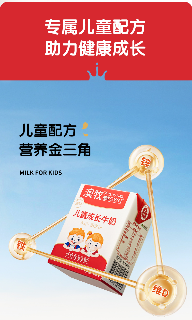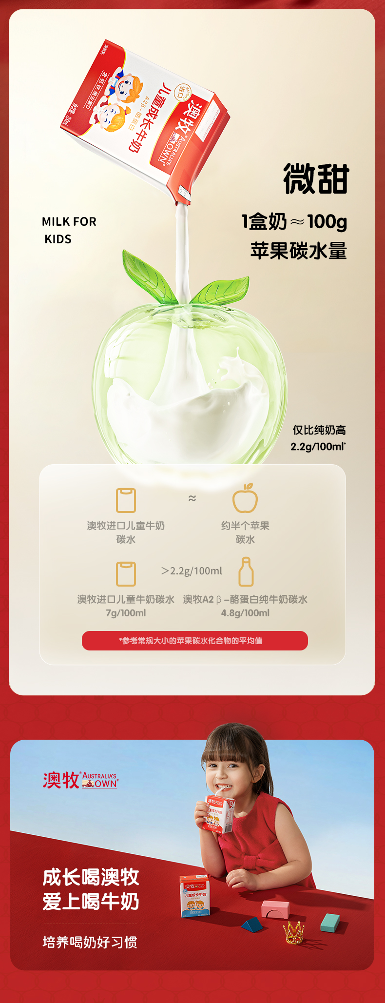 【品牌直供】澳牧进口儿童牛奶200ml*15盒