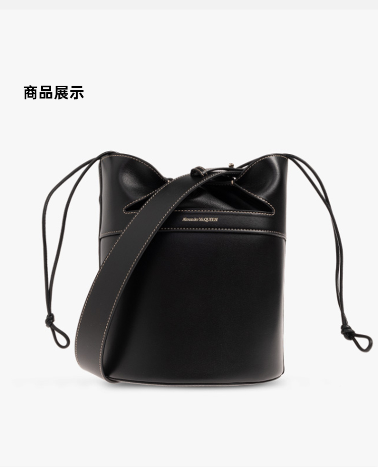 【一】ALEXANDER MCQUEEN 亚历山大.麦昆 女士皮革字母徽标印花水桶包 黑色 775912 1BLUU 1000