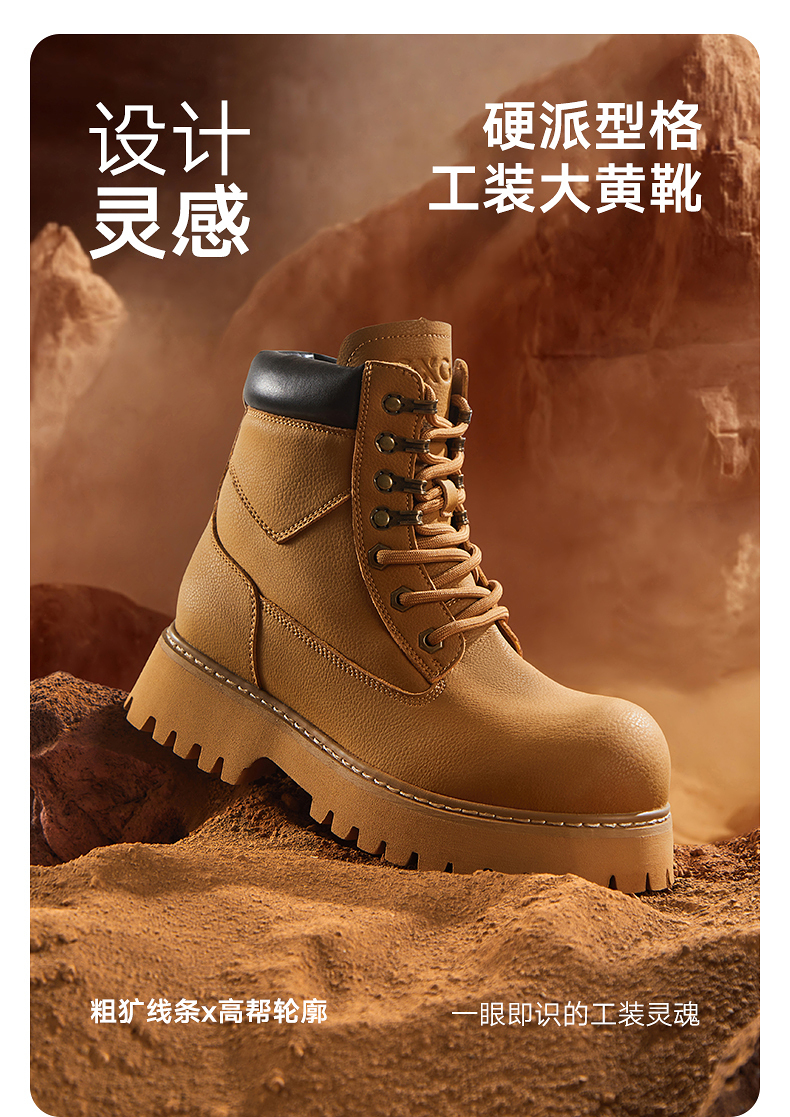 GXG通勤男鞋经典百搭马丁靴工装户外登山靴冬季潮流大黄靴