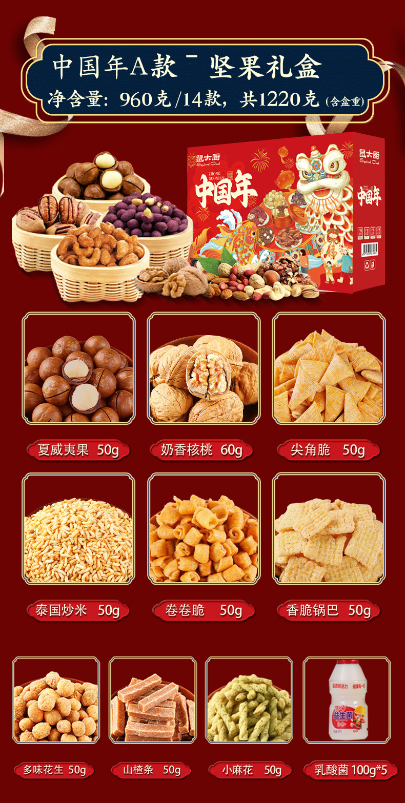 「买1送1!到手两箱」年货坚果礼盒装 送礼整箱混合干果零食大礼包送长辈春节礼品零食