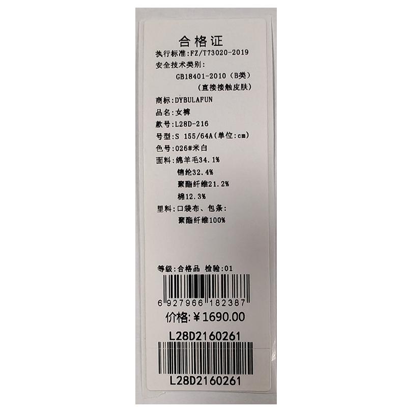戴布拉芬裤子L28D216