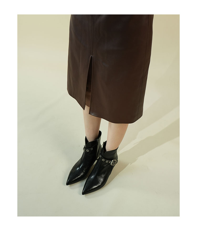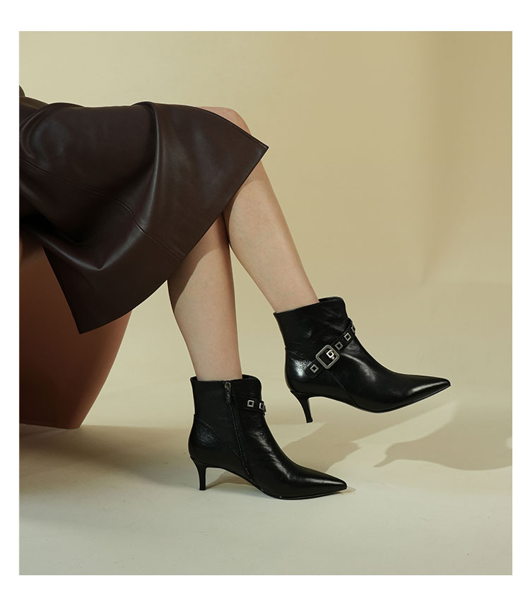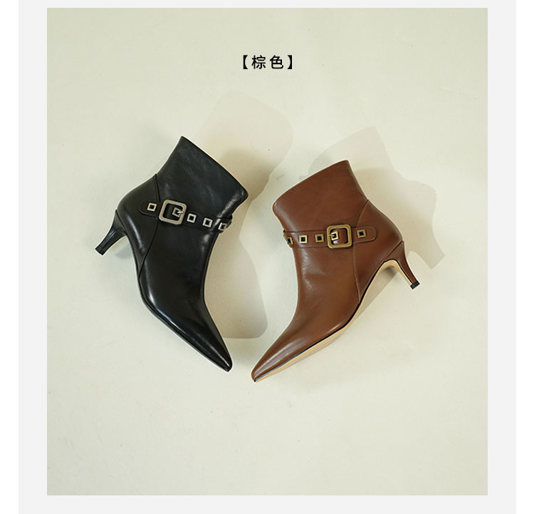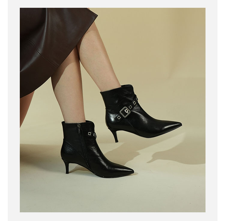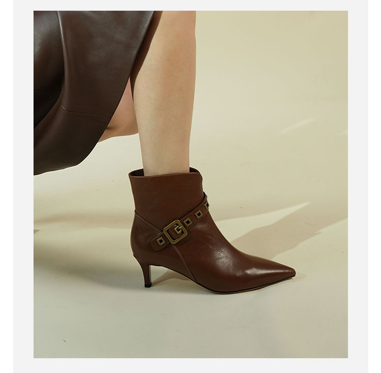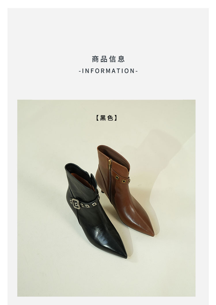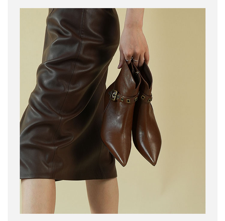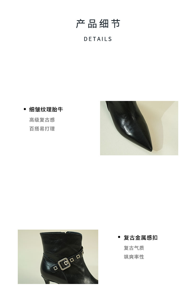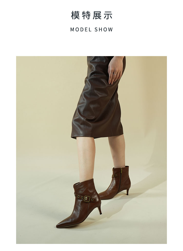 Westory2025年冬季尖头中跟胎牛复古飒爽百搭短靴W25DS85621