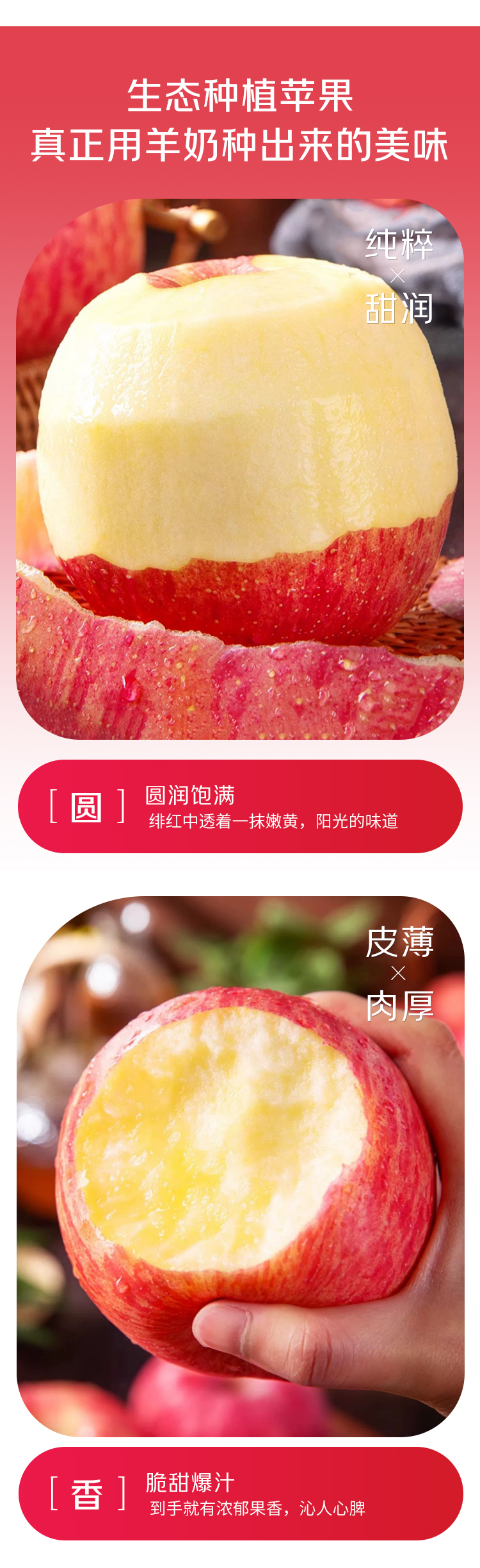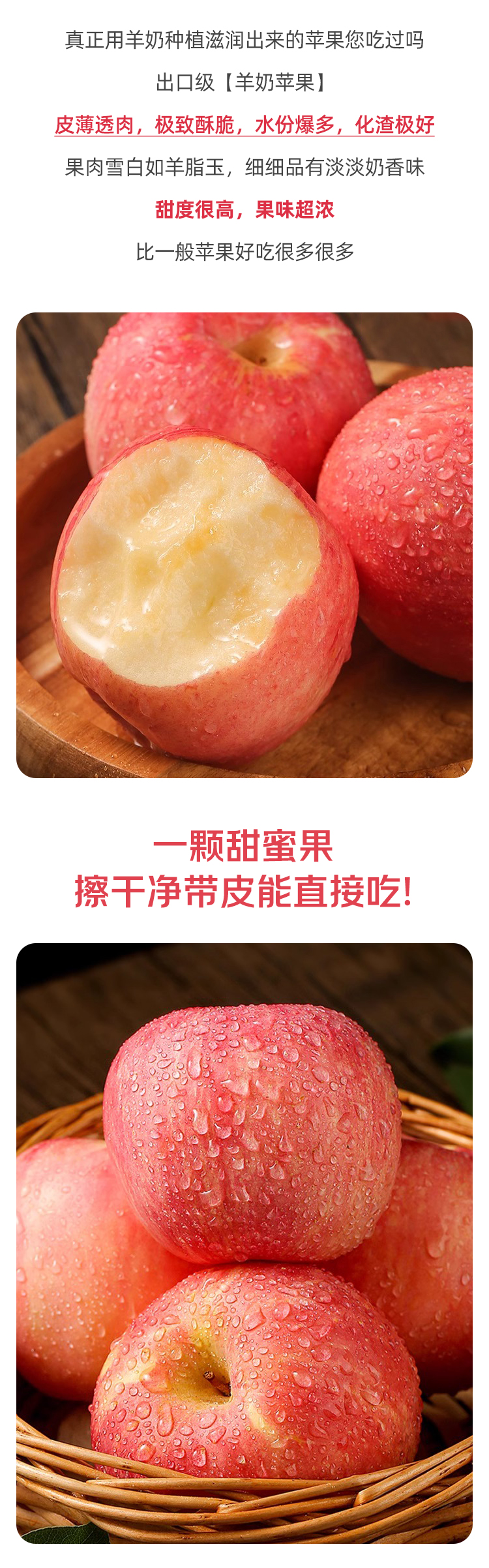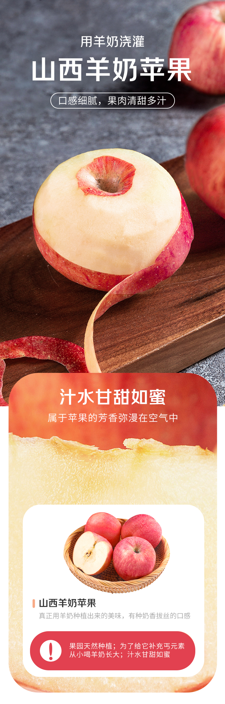 羊奶苹果,它来自山西万荣,当地果农坚持用新鲜羊奶、大豆蛋白营养液精心浇灌。咬上一口,瞬间被征服,它的果皮薄如蝉翼,果肉脆嫩,汁水丰沛,一口下去,爆汁感满满,甜度高达 17 度