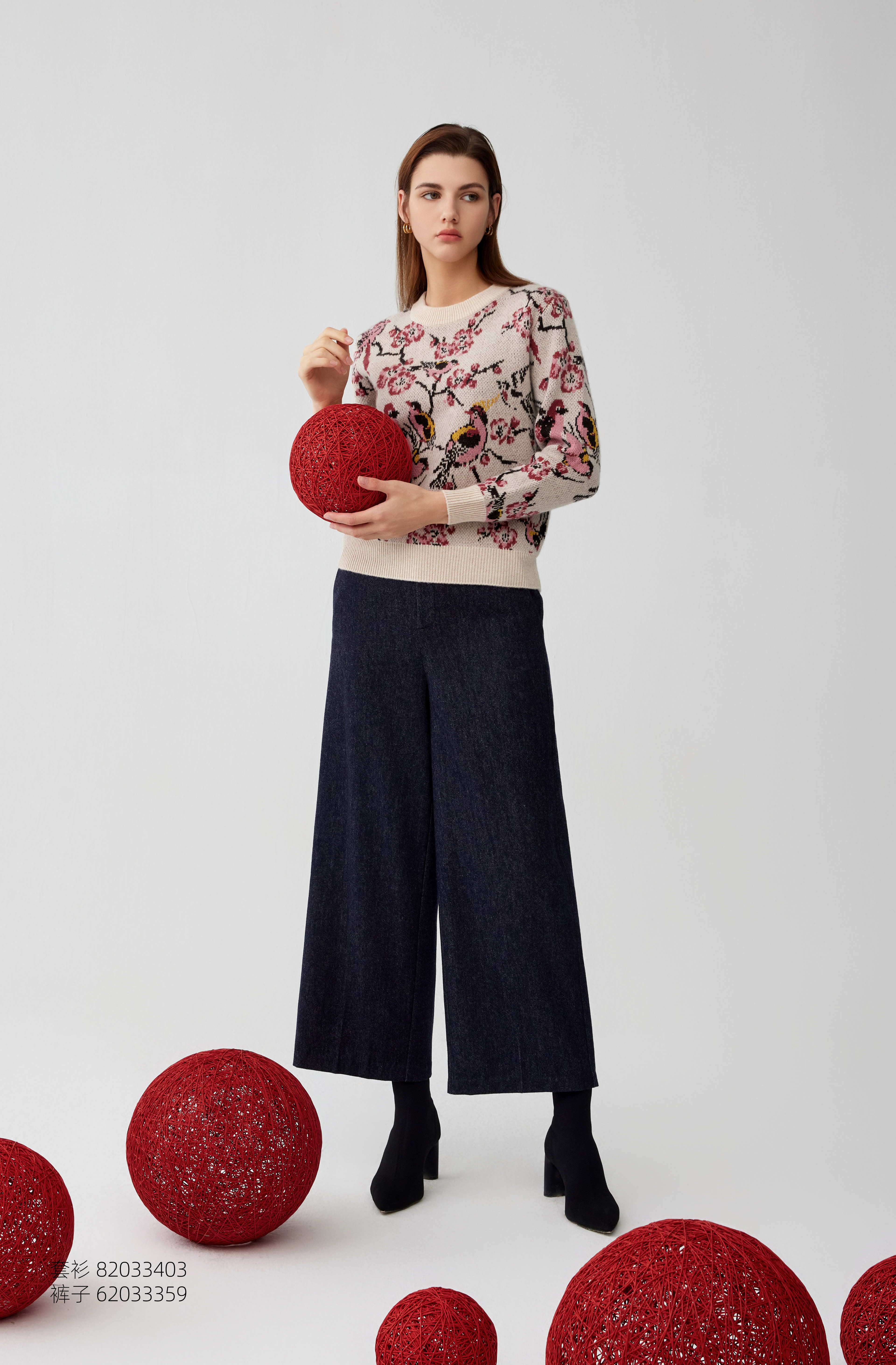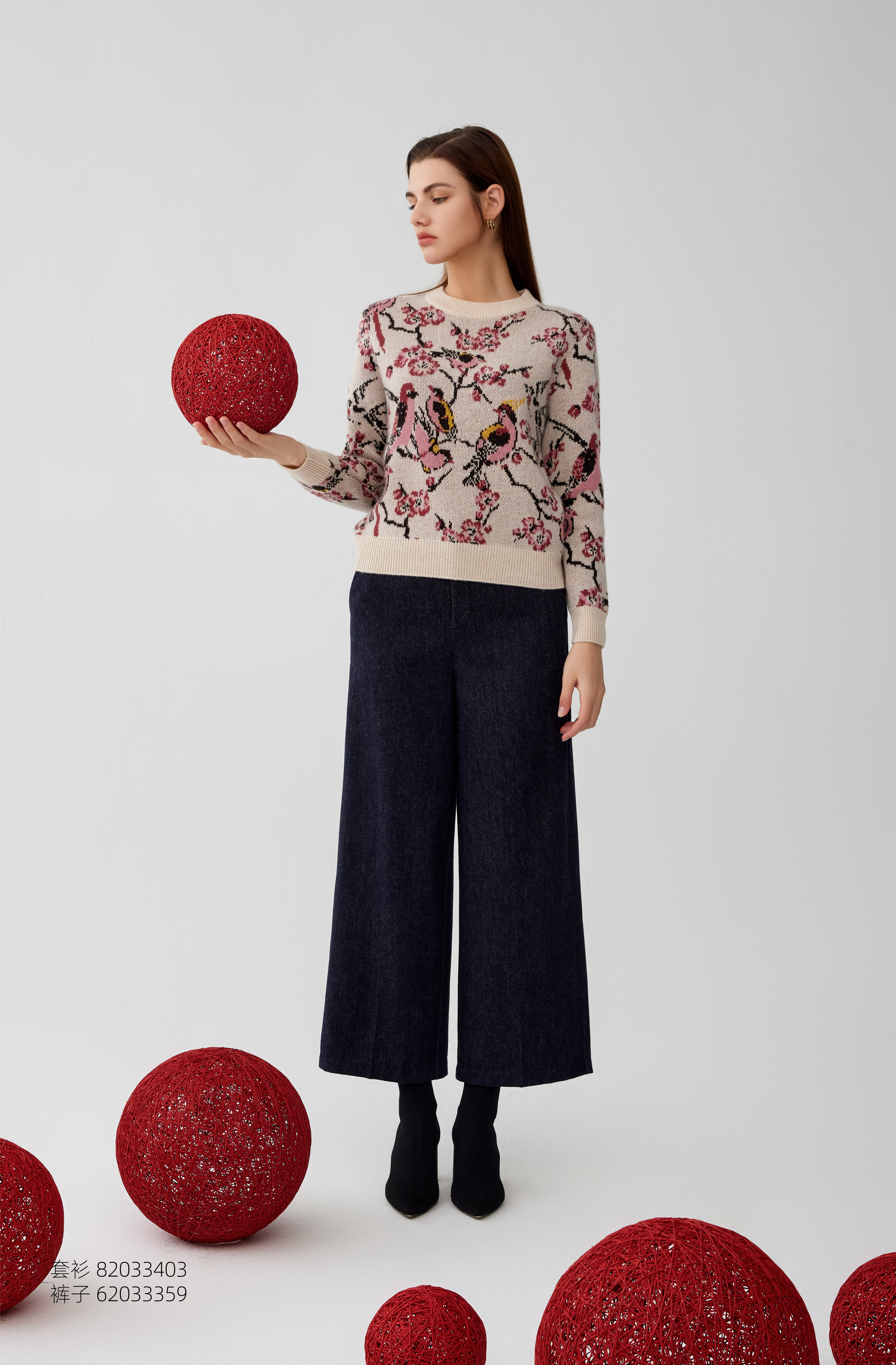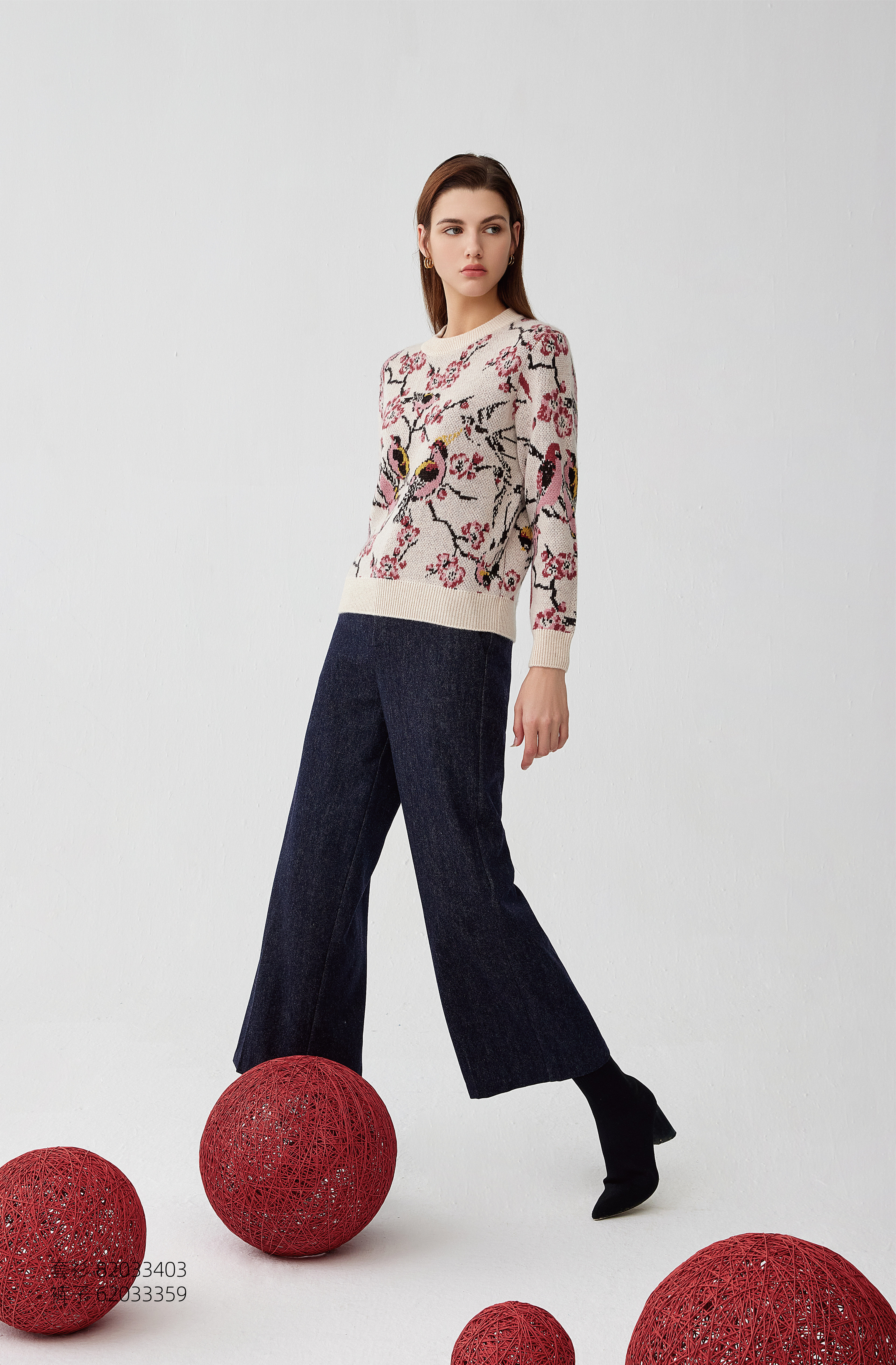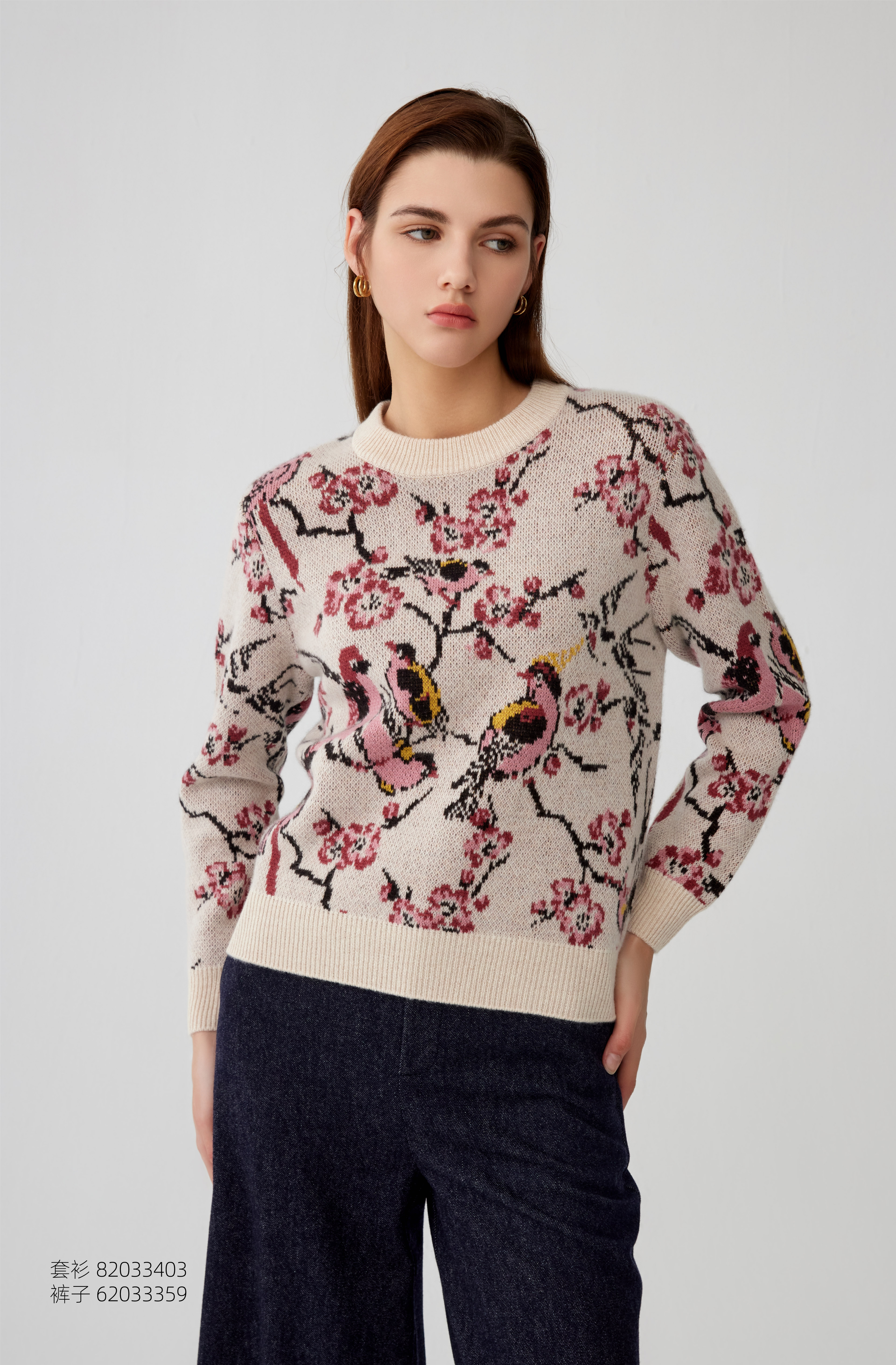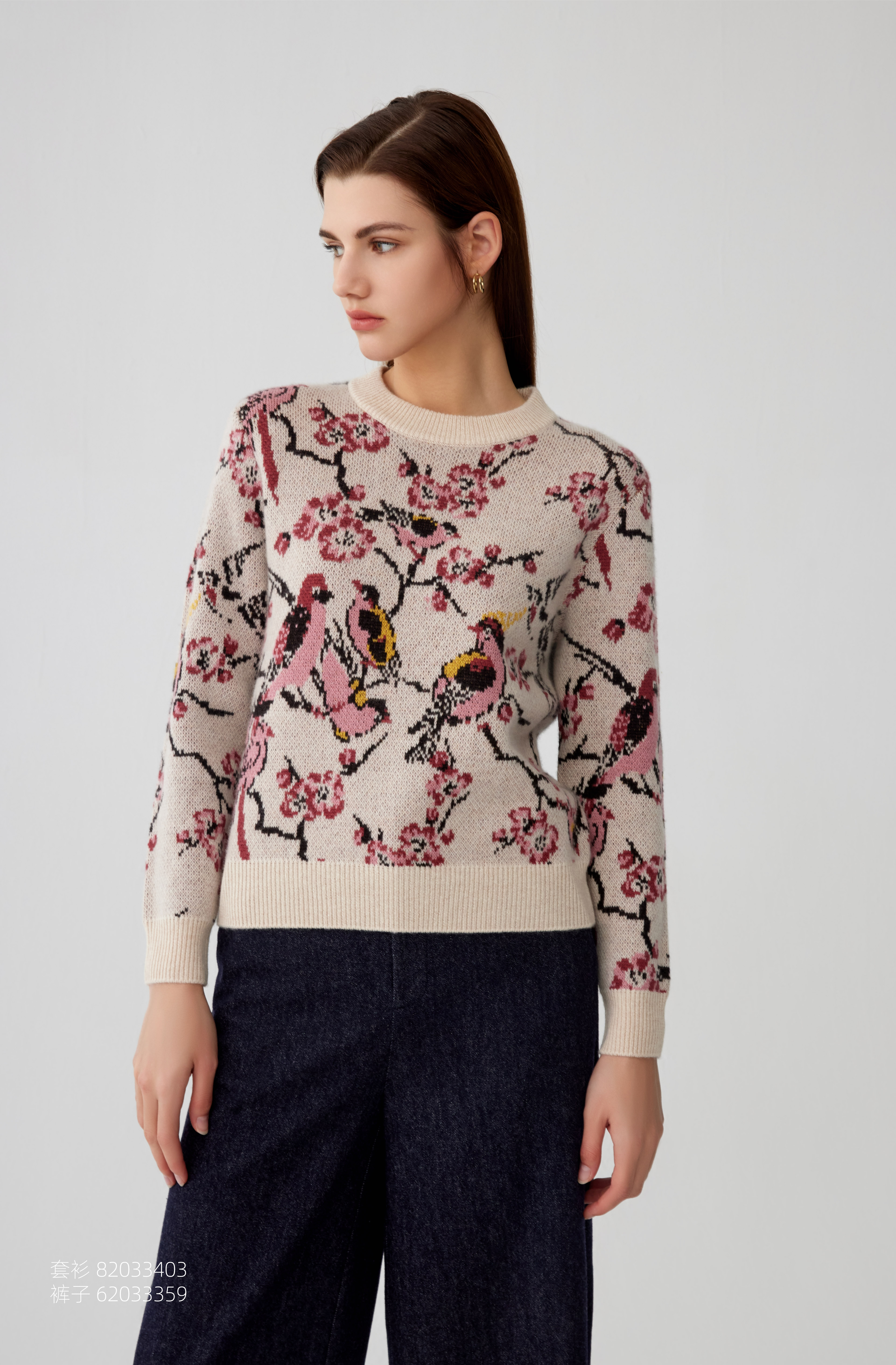 【纯羊绒花鸟提花羊绒衫】羊绒世家秋冬新品女士100%山羊绒内搭保暖毛衣