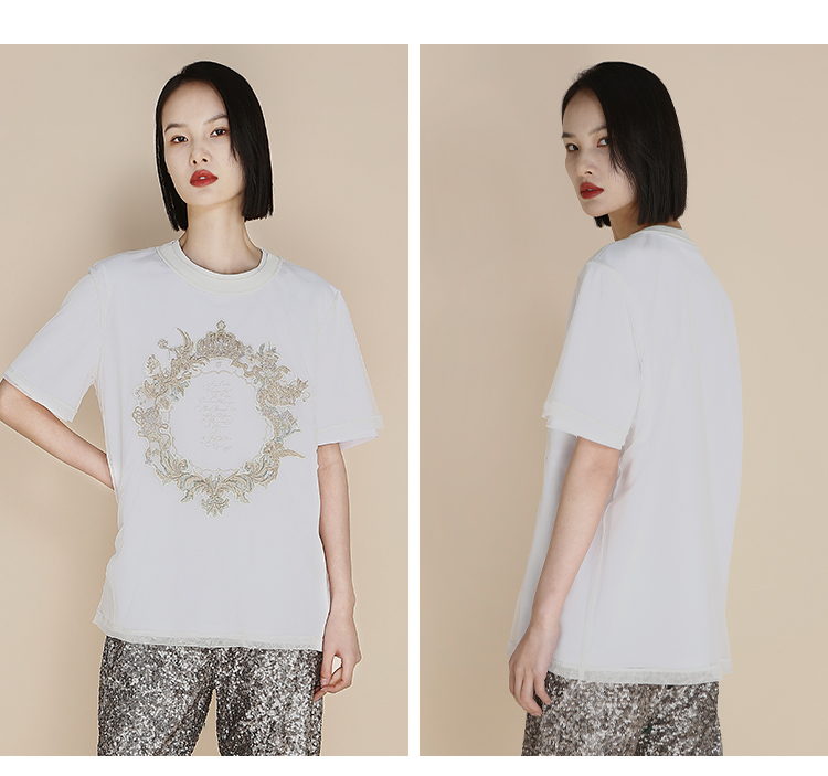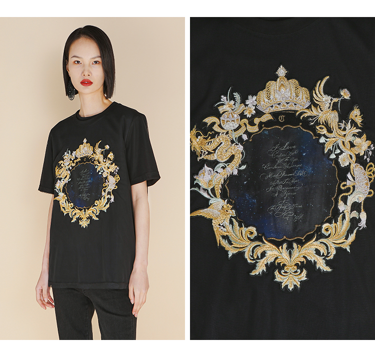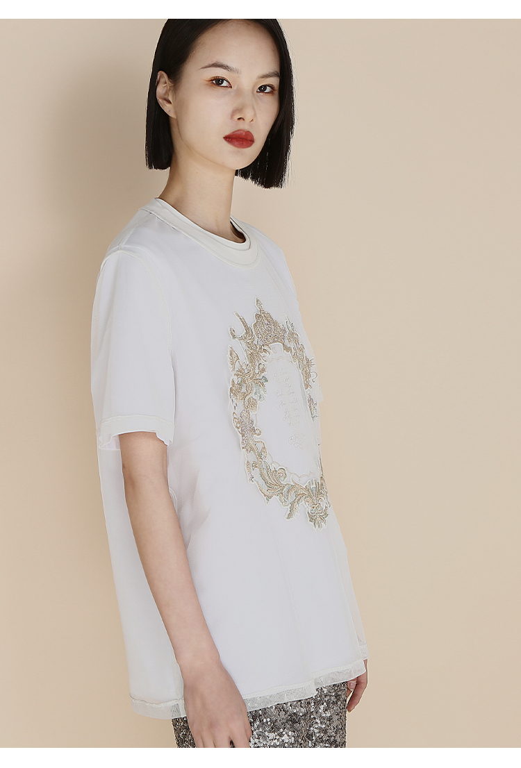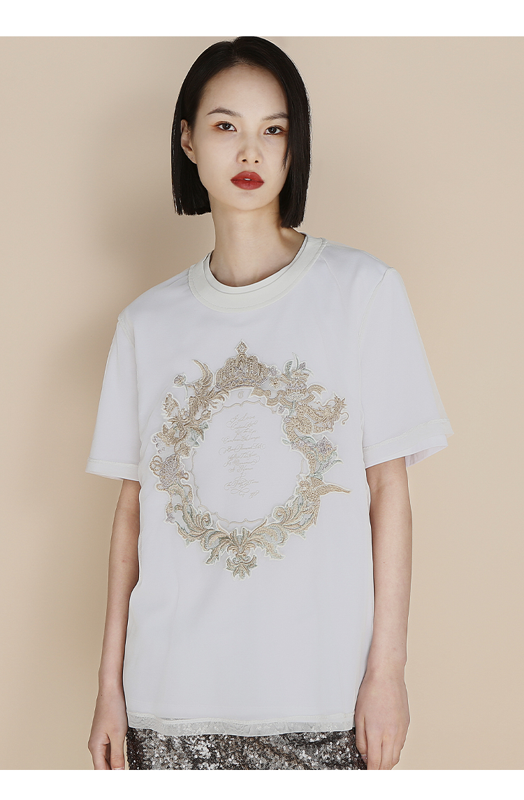 RSG郭培成衣品牌高光十刻系列浮雕刺绣夏季新款上衣T恤