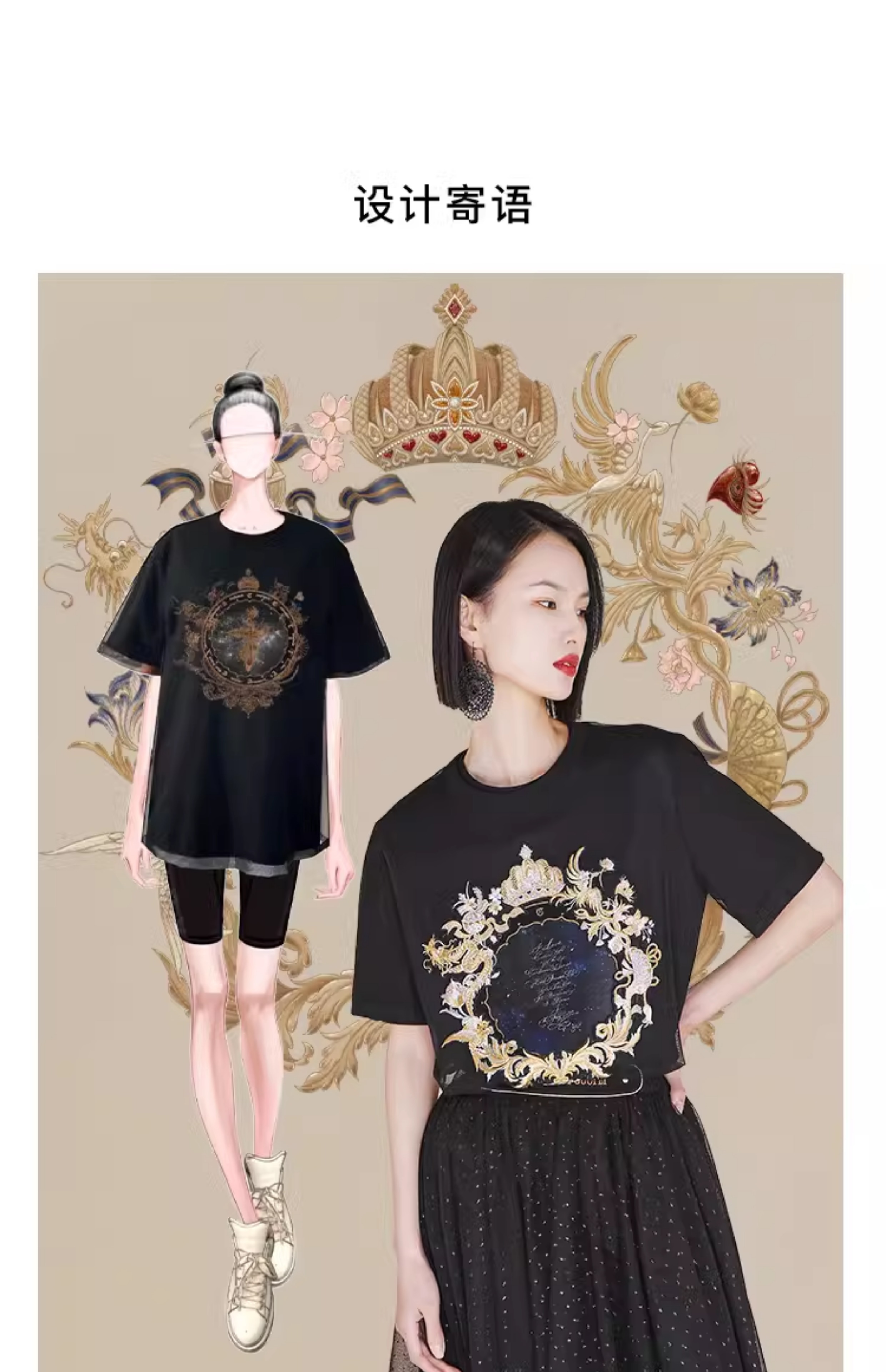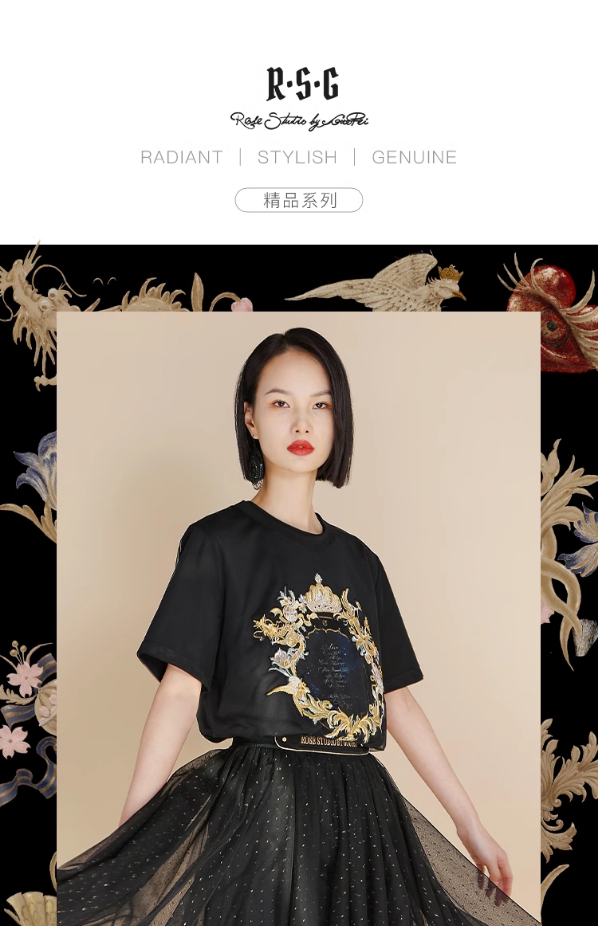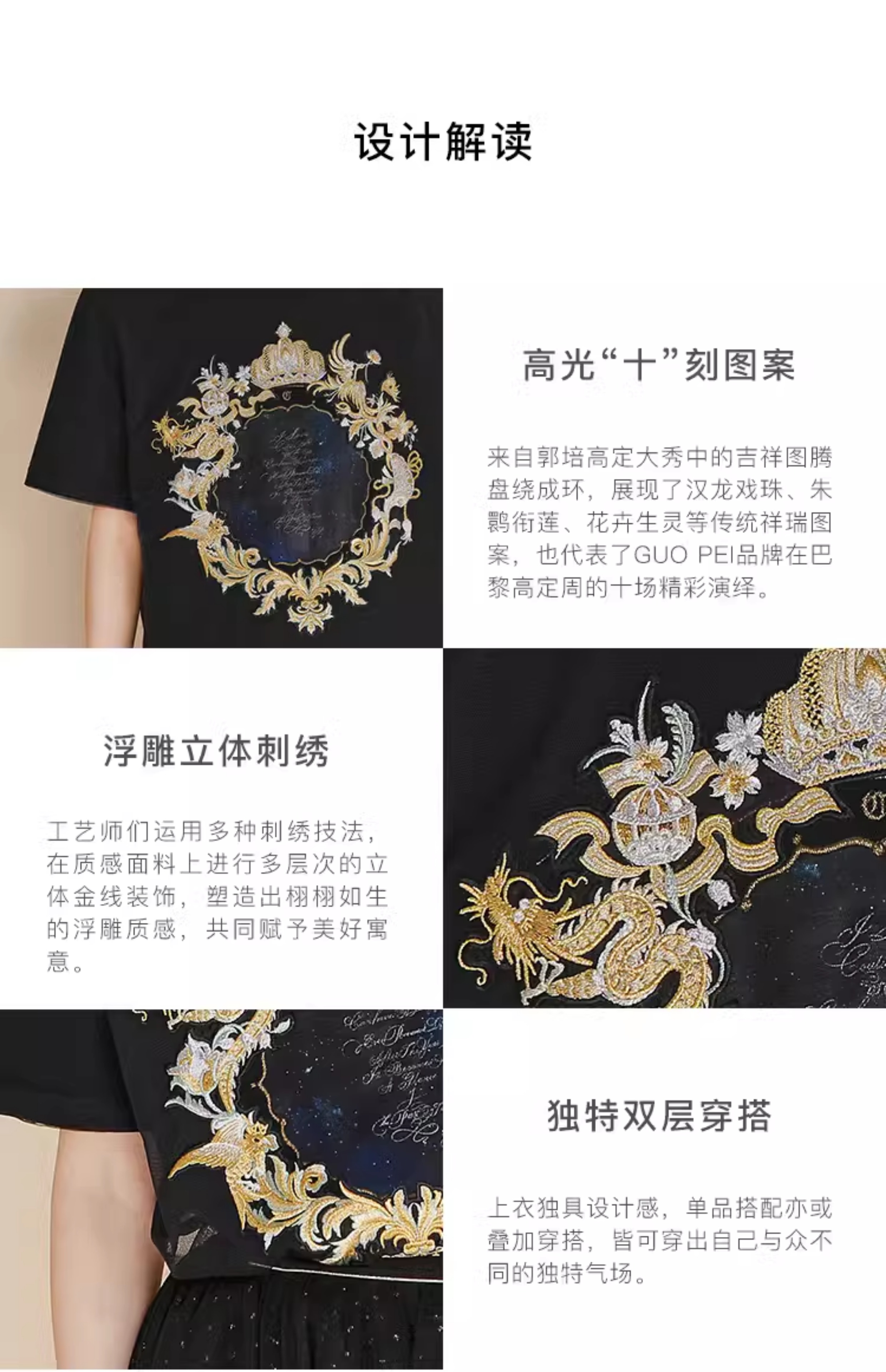 RSG郭培成衣品牌高光十刻系列浮雕刺绣夏季新款上衣T恤