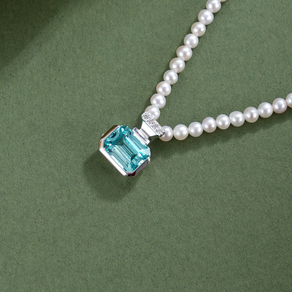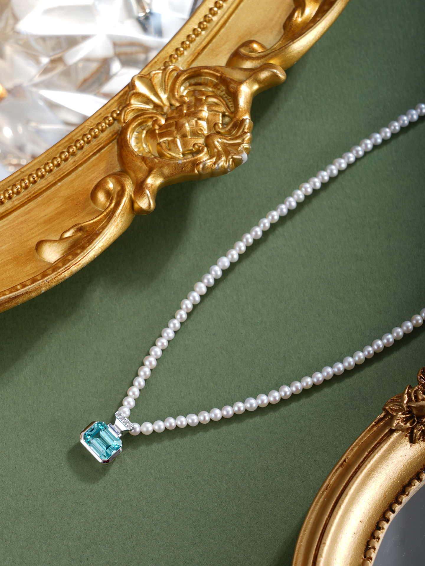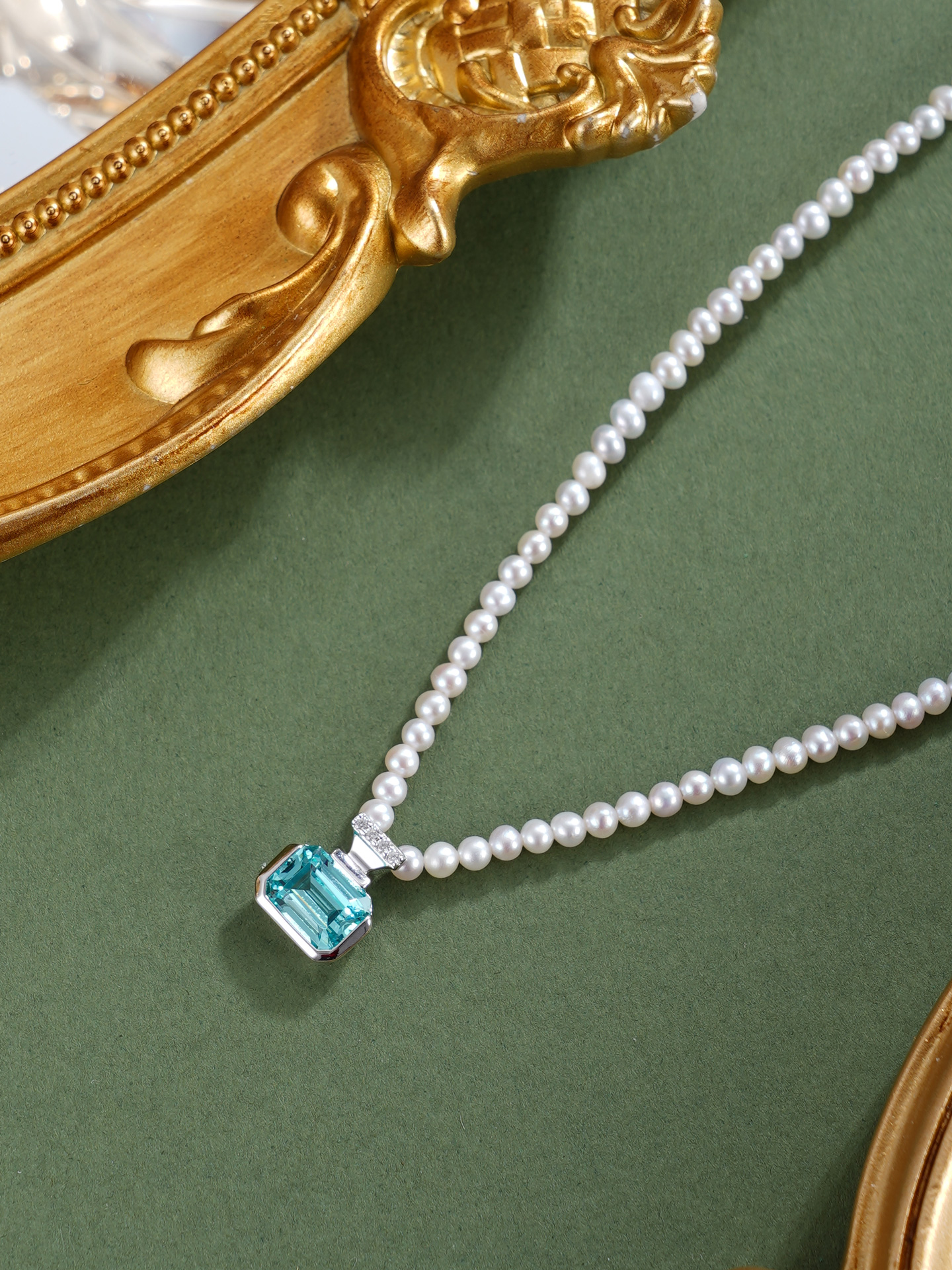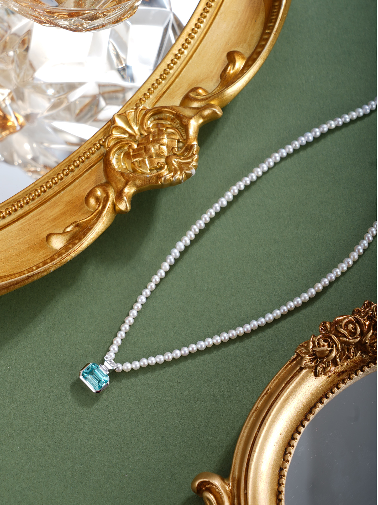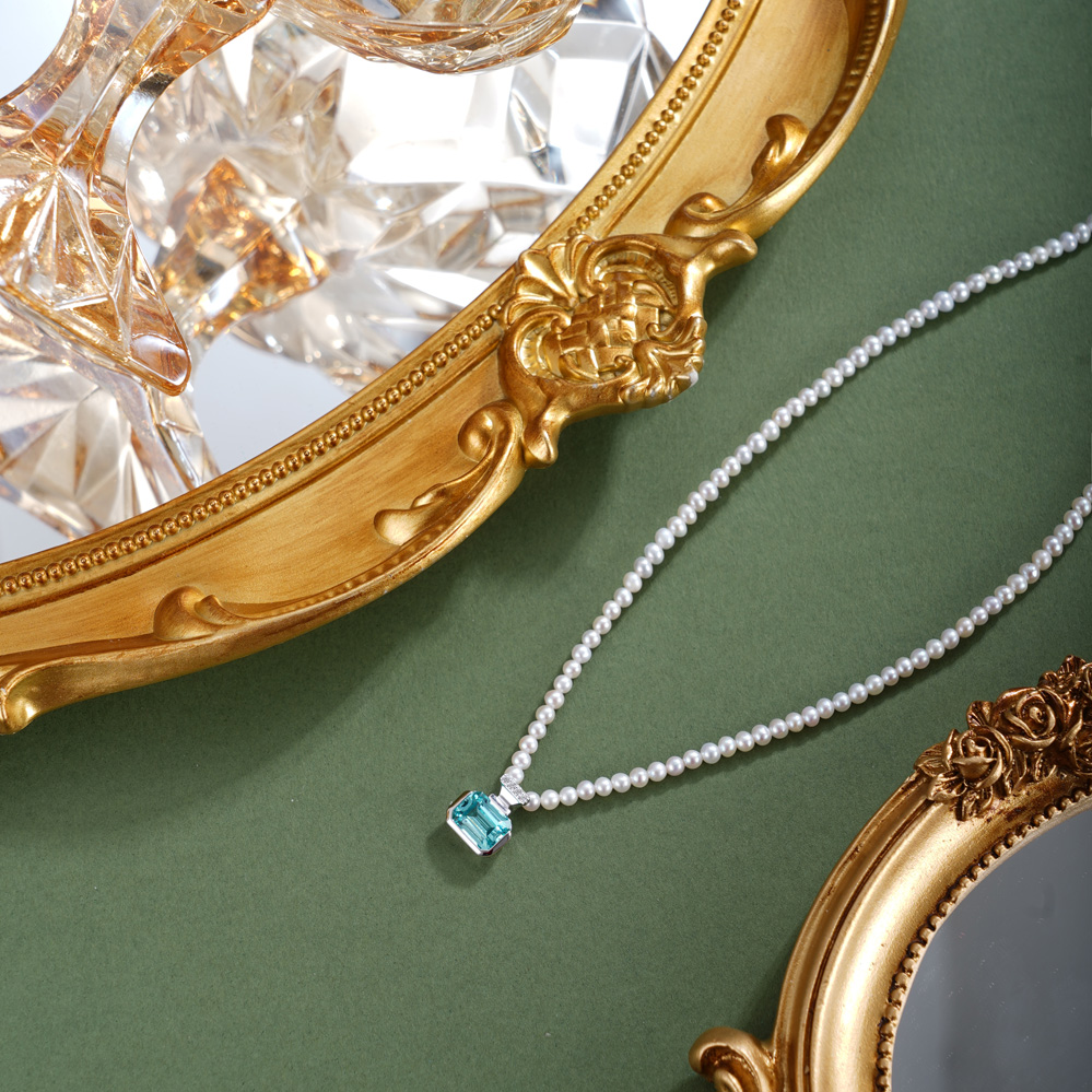 子佩集【蔚蓝序章】银S925珍珠惜王妃项链【ZZXL012】2.8mm珠蓝方块2601