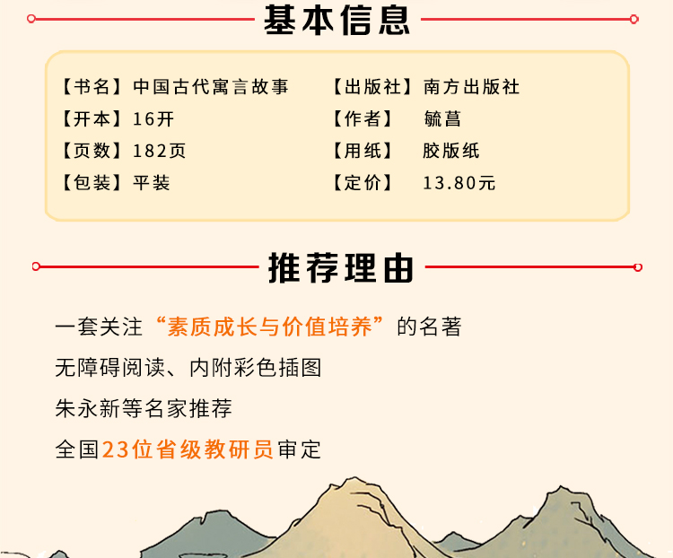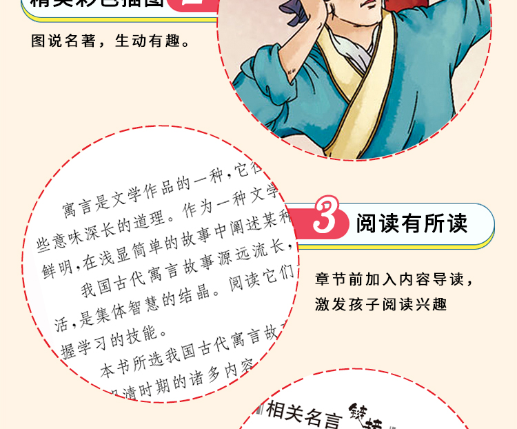 本书所选寓言故事,大都生动有趣。一定要仔细阅读,培养自己的阅读兴趣,认真感受祖国语言文字之美。