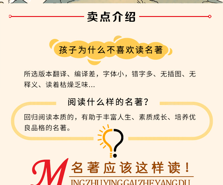 ★好阅读,决定一个人的成长。励志版名著,关注学生的素质成长,符合其开启民智、昌明教育的宗旨,使名著回归人生成长导师的本意,是值得肯定的有价值的事情。