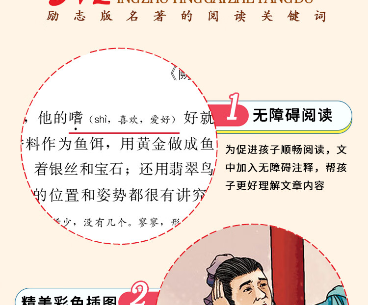 对于阅读经验较少的学生。让他们有兴趣读和读上去不难,当是首要。励志版名著将难词、引用、人物、好句等进行了详细的注释与精评。这是本书的“功夫版块”。