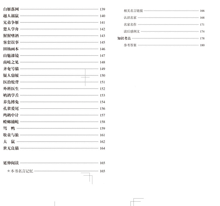 我国古代寓言故事源远流长,博大精深。它们大都来源于生活,是人们集体智慧的结晶。阅读它们有利于我们获取生活的经验,掌握学习的技能。