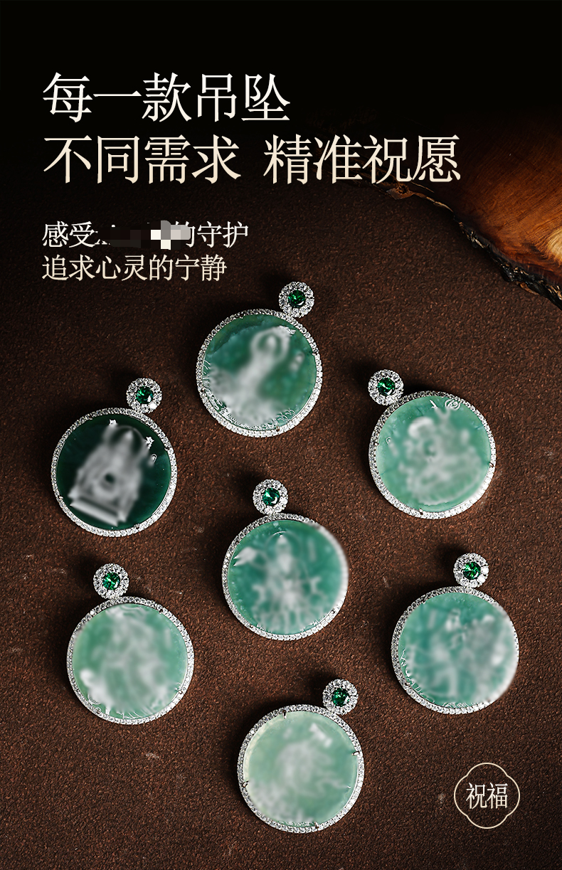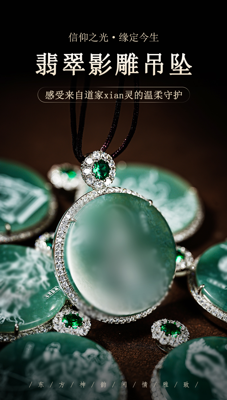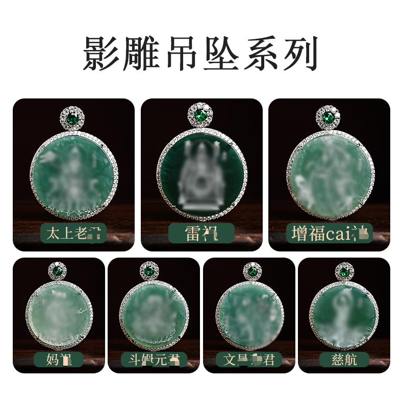 原创国风翡翠影雕十四款可选人物图像国风吊坠男女同款