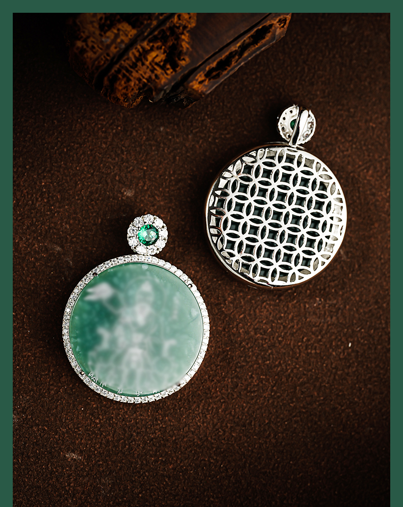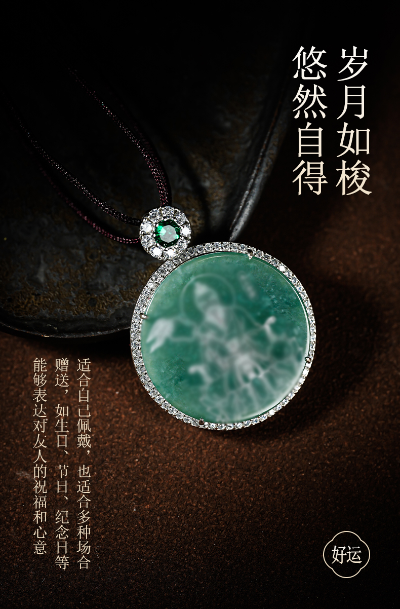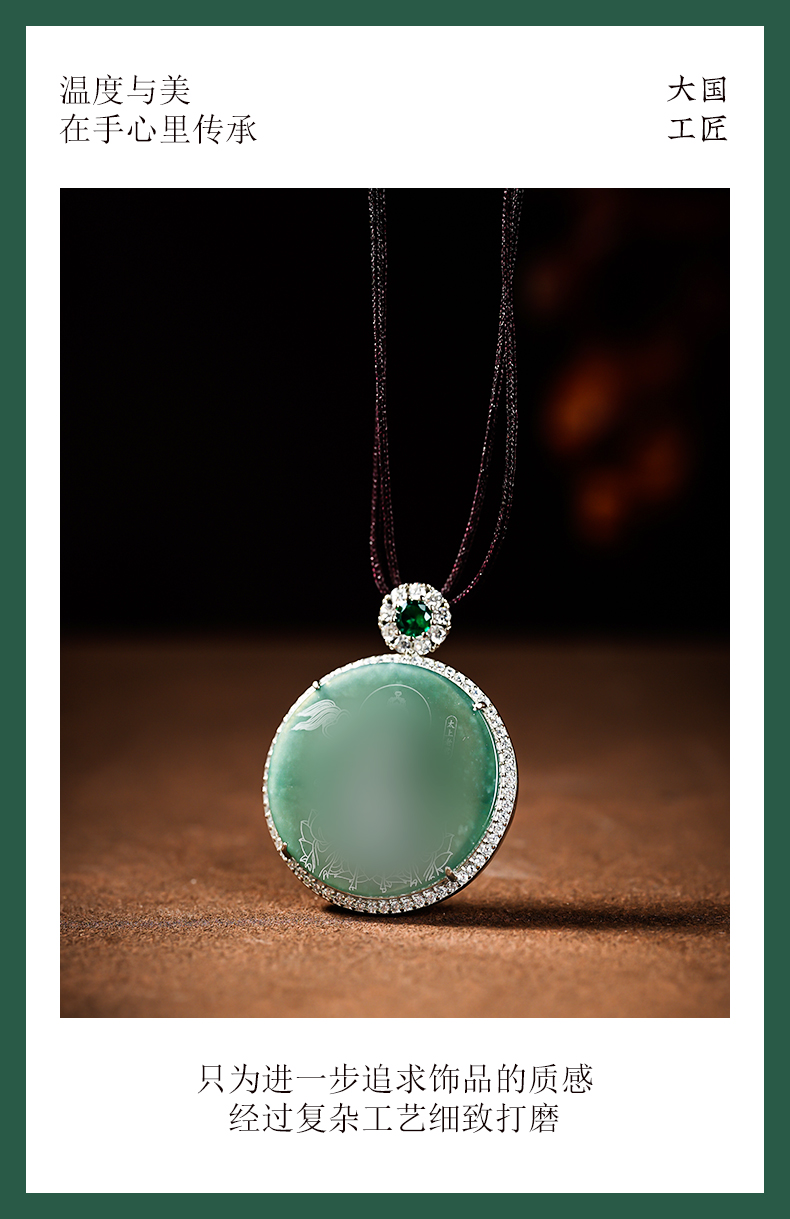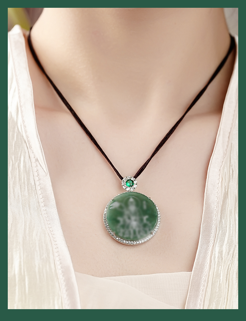 原创国风翡翠影雕十四款可选人物图像国风吊坠男女同款