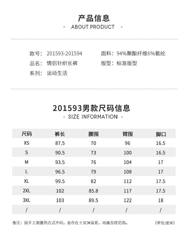 【线下同款 收口设计 休闲跑步皆宜】赛琪情侣运动长裤201594