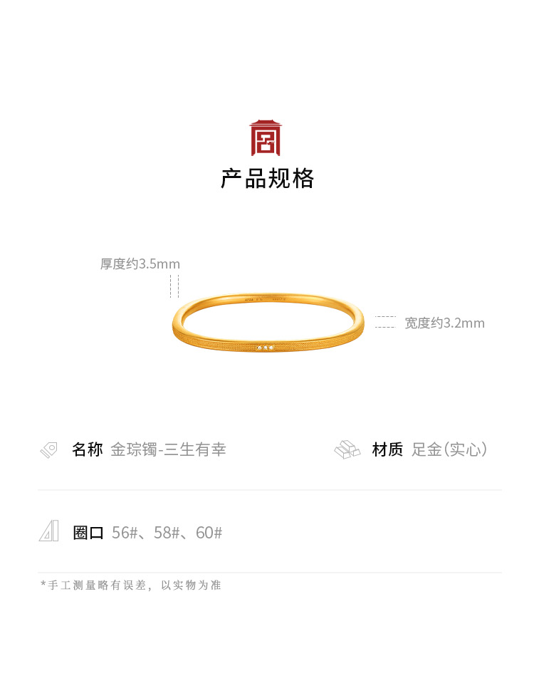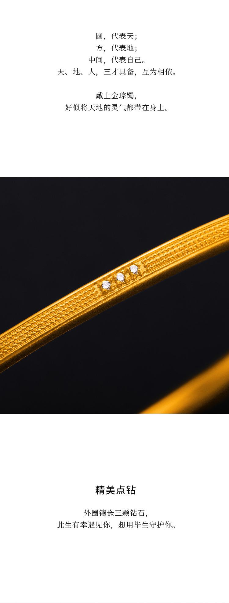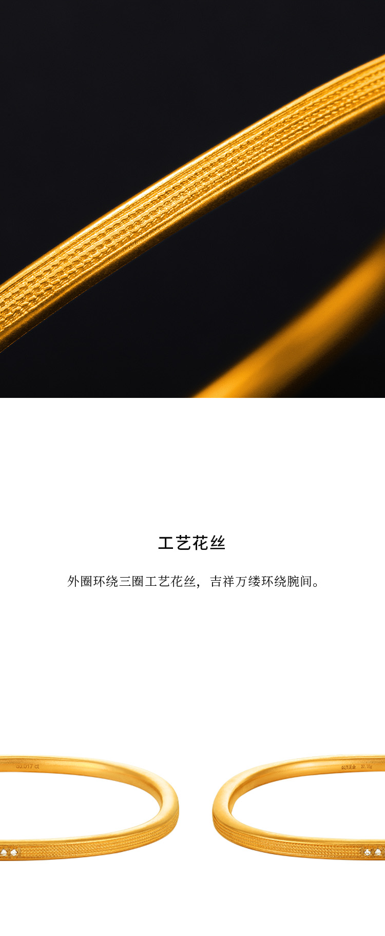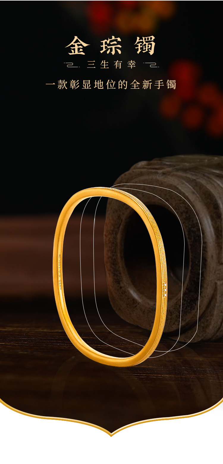 宫匠造办 金琮镯 三生有幸黄金手镯镶钻