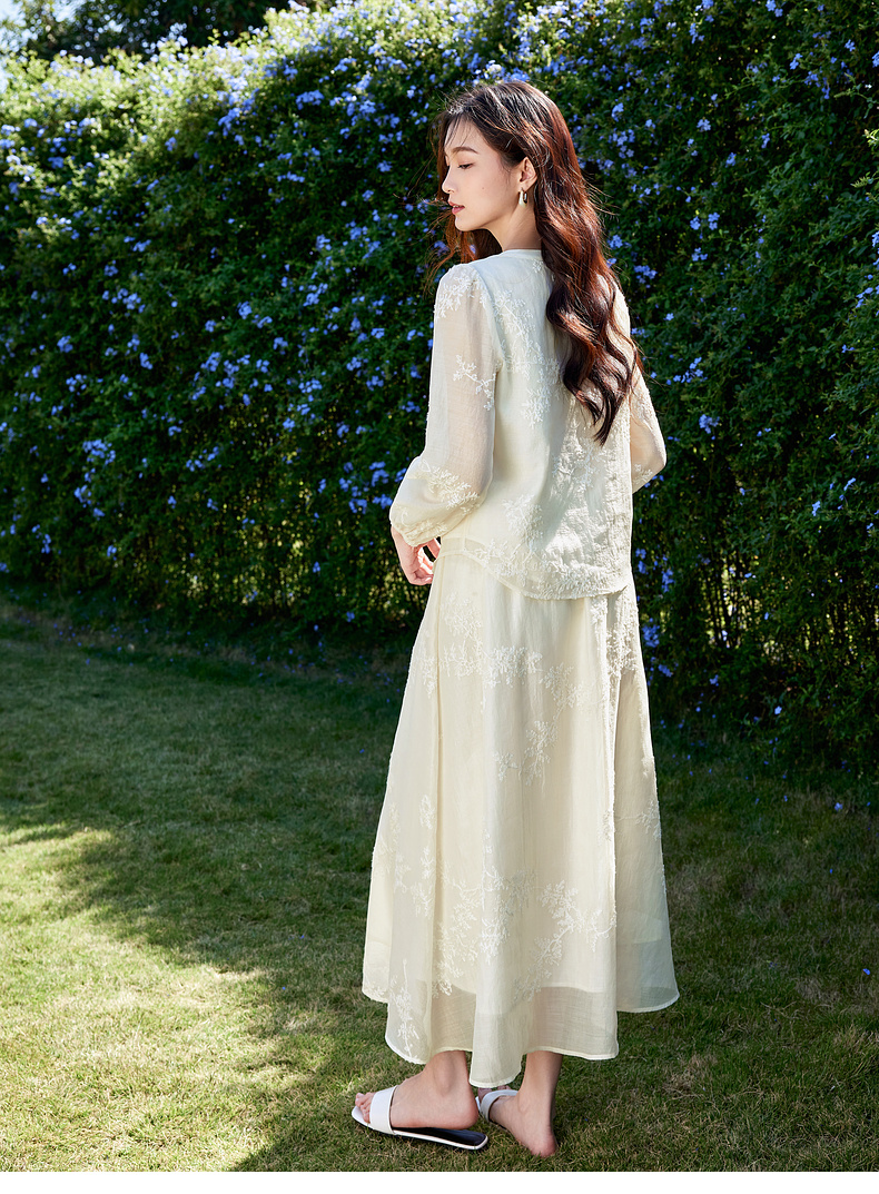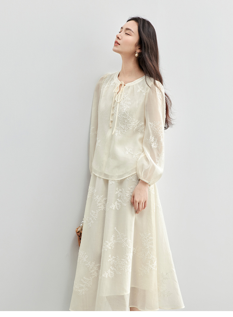 【内购】国风新中式浪漫系绑带上衣A字半裙国风刺绣套装-151Z58221