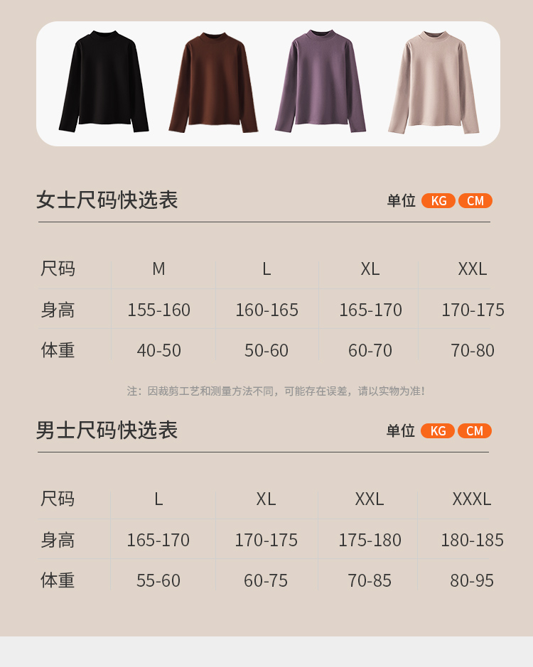 【男女款】【220g 阳离子热暖绒】【猫人】【M-3XL】男女士保暖亲肤打底衫