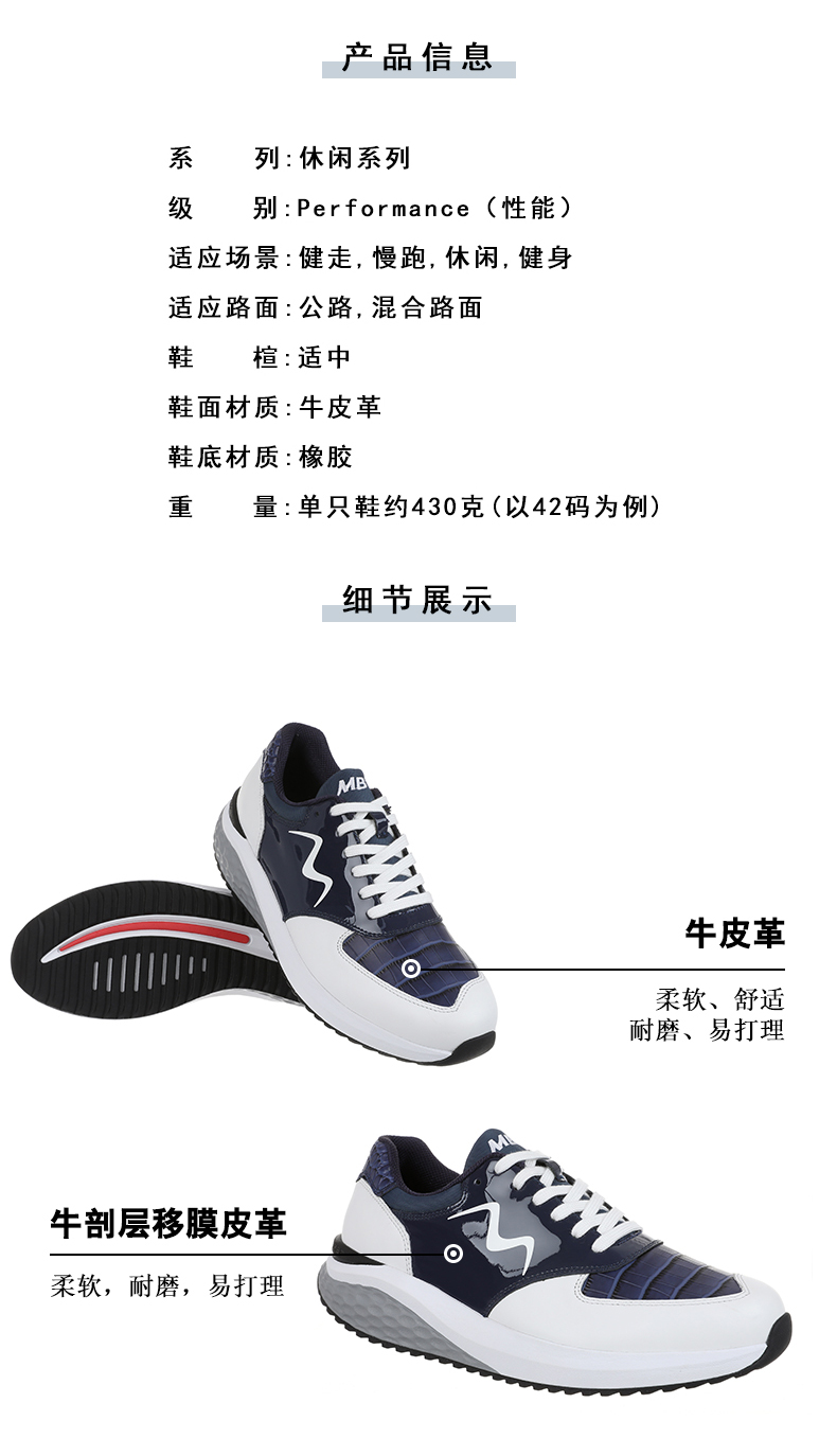 MBT足健康鞋男厚底休闲通勤鞋 纠正走路姿势 缓震 增高 牛皮MAFI