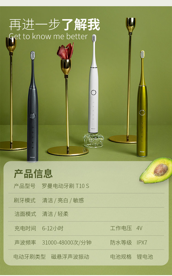 ROAMAN/罗曼电动牙刷成人款情侣软毛洁面自动牙刷T10S小果刷