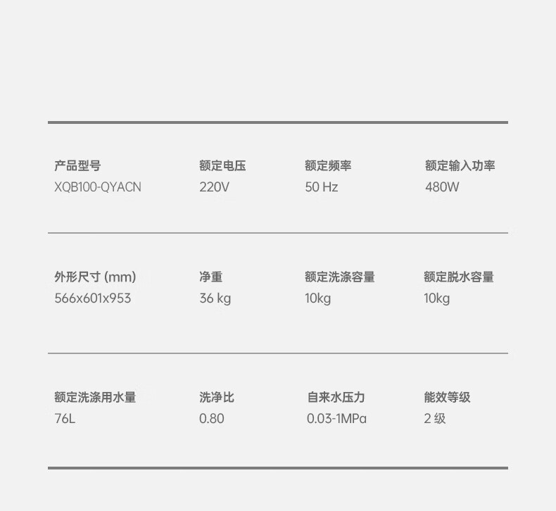 松下洗衣机 XQB100-QYACN