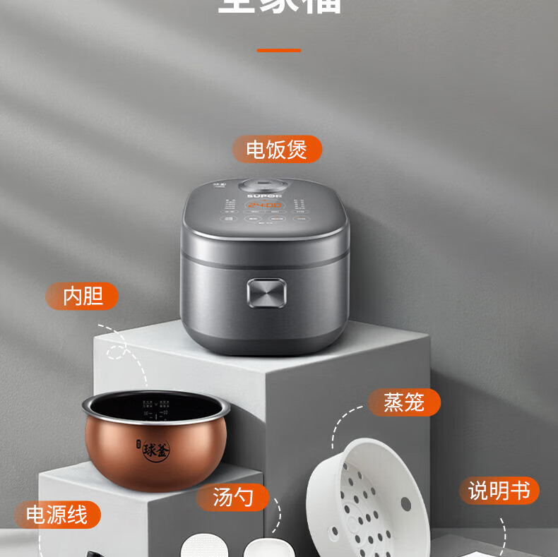 苏泊尔(SUPOR)电饭煲_智能预约煮饭锅_IH电磁加热_家用铜晶球釜内胆电饭锅4-6人适用_SF40HC53